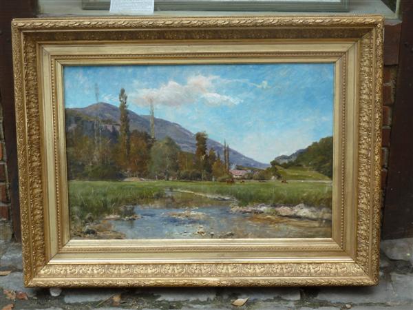 | Large oil on canvas in original nineteenth century gilded frame. Signed C. Terraire and dated 1889. |