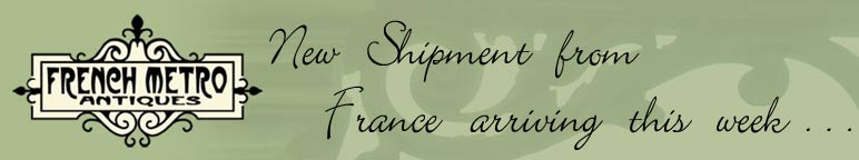 We will be closed this week while we unpack and will reopen on Saturday, April 7 at 10:00 a.m. with over four hundred and fifty antique treasures from our winter trip to France. Stop by on Saturday morning, and be the first to see our latest arrivals, or stay tuned to our website as we add items from our spring collection.