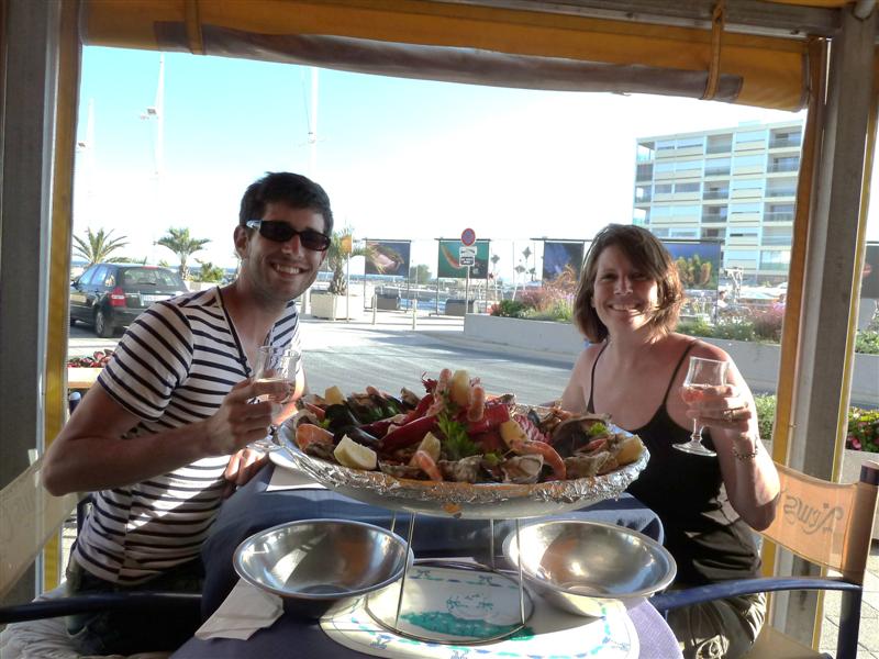 To celebrate our final shopping day, we spent the afternoon on a Mediterranean beach near Montpellier and had fruits de mer (fruits of the sea….or seafood platter) and rosé wine to celebrate!