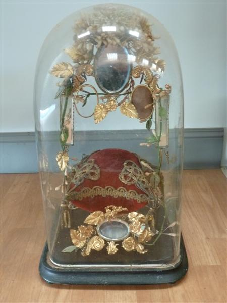 We also found a late nineteenth century marriage globe still holding the orange blossom laurel wreath worn by a bride on her wedding day.