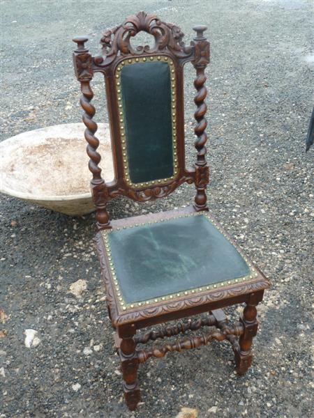 Set of six hand carved Louis XIII dining chairs. Late nineteenth century. |