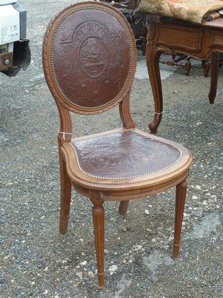 Set of six hand carved walnut Louis XVI dining chairs. |