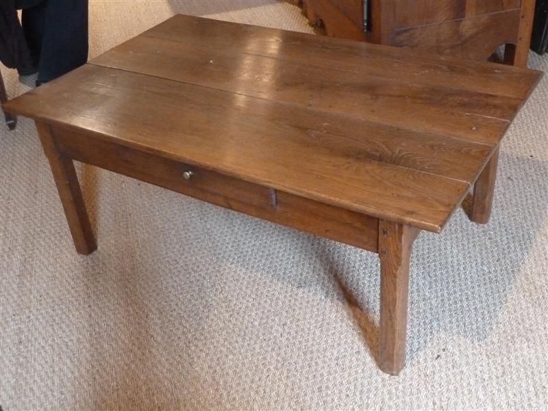 Large eighteenth century artisan-made farm table converted into a coffee table. |