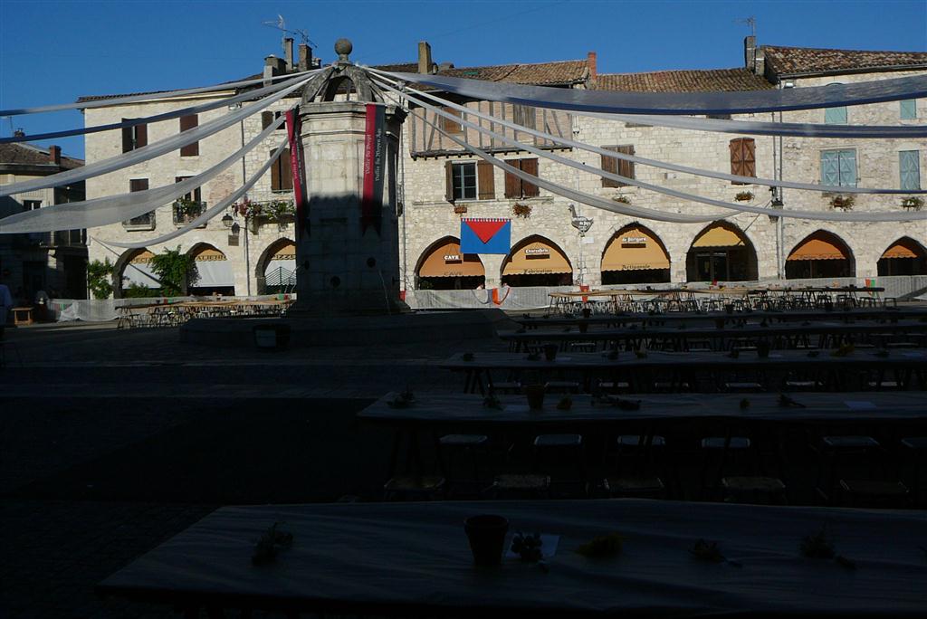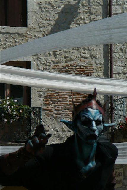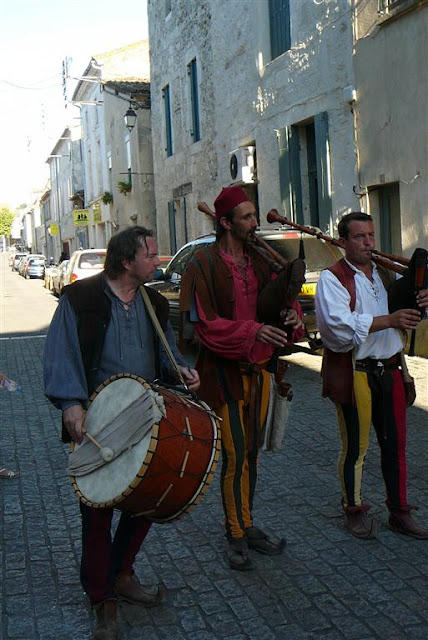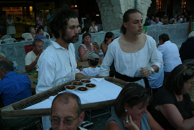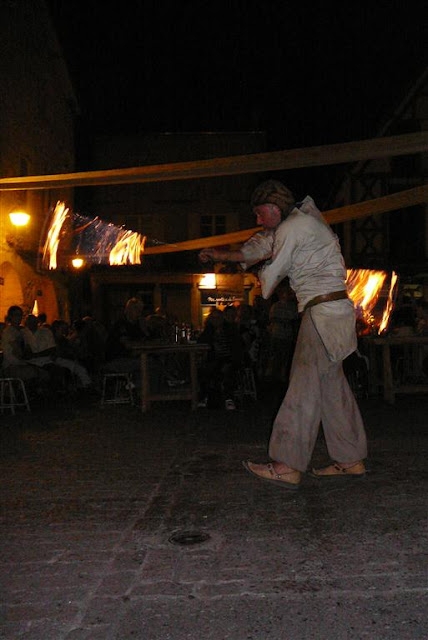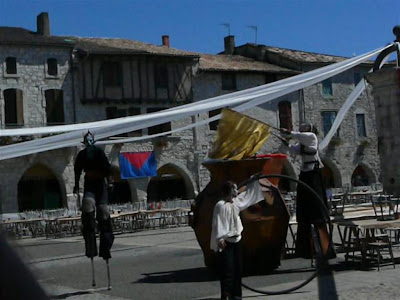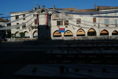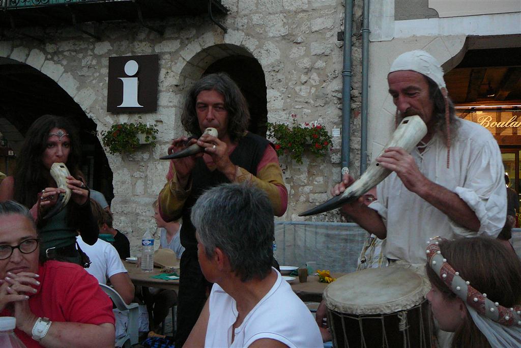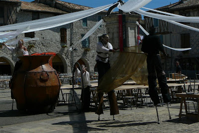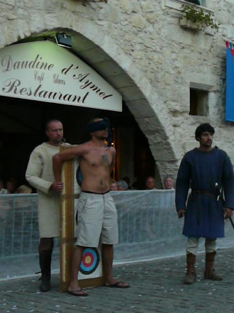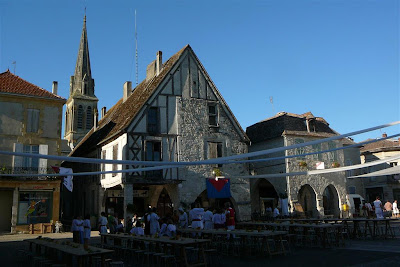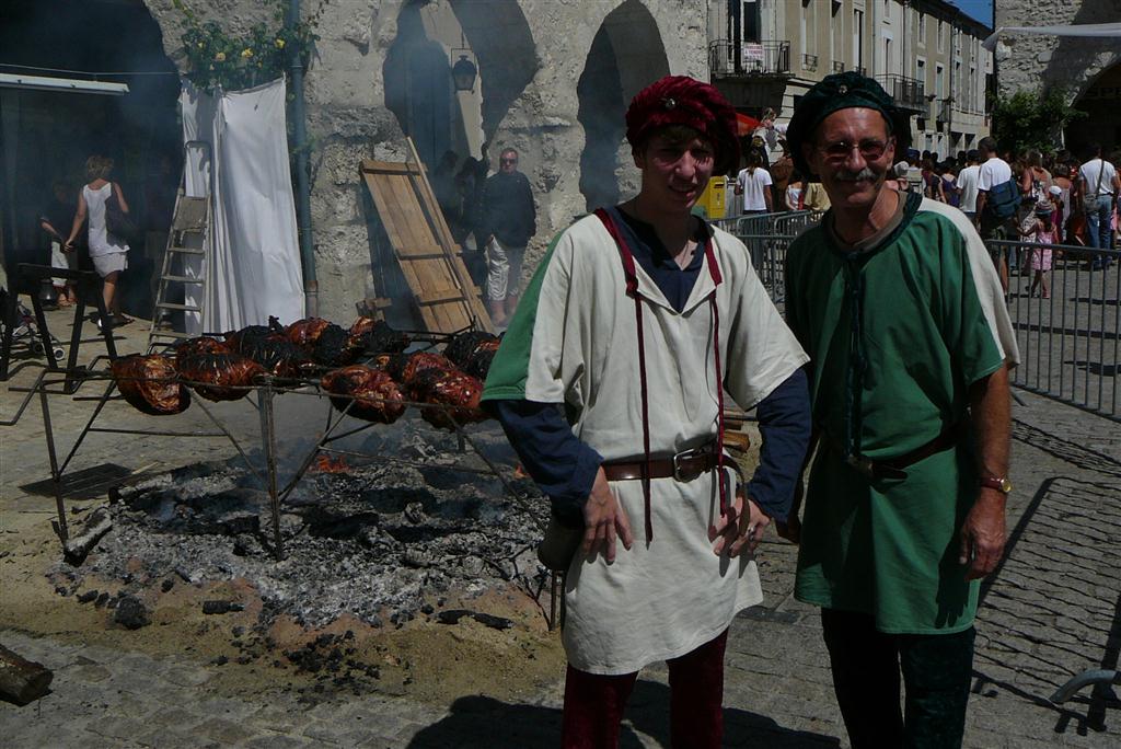 Pigs were roasted all day on the central square of this bastide village which was all decked out for the medieval feast in the evening.