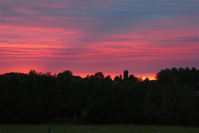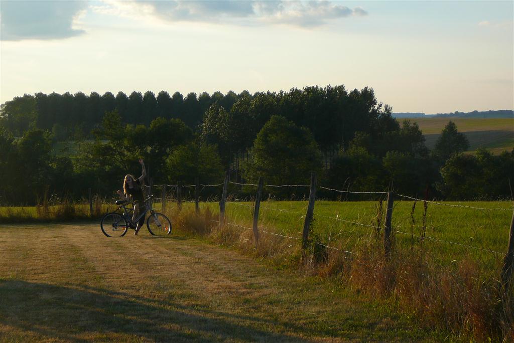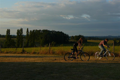 Waiting for us on the table were French cheeses, fruits, wine, bread, ham, coffee, jam, and foie gras, the speciality of the region. Harrison and Camille quickly located the bicycles and took a ride around the property. Then we ate our first dinner here outside and sat back to attend the sunset right out our back door.