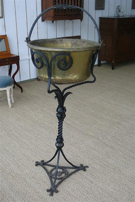 Now THIS is a copper piece! Standing over 5 feet tall, this yellow copper cauldron stood surrounded by a double staircase in the foyer of a mansion in Le Perche.