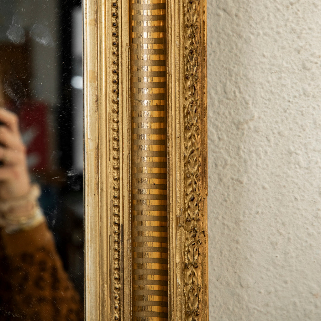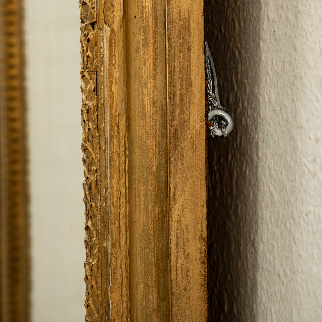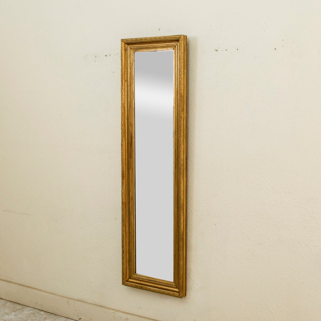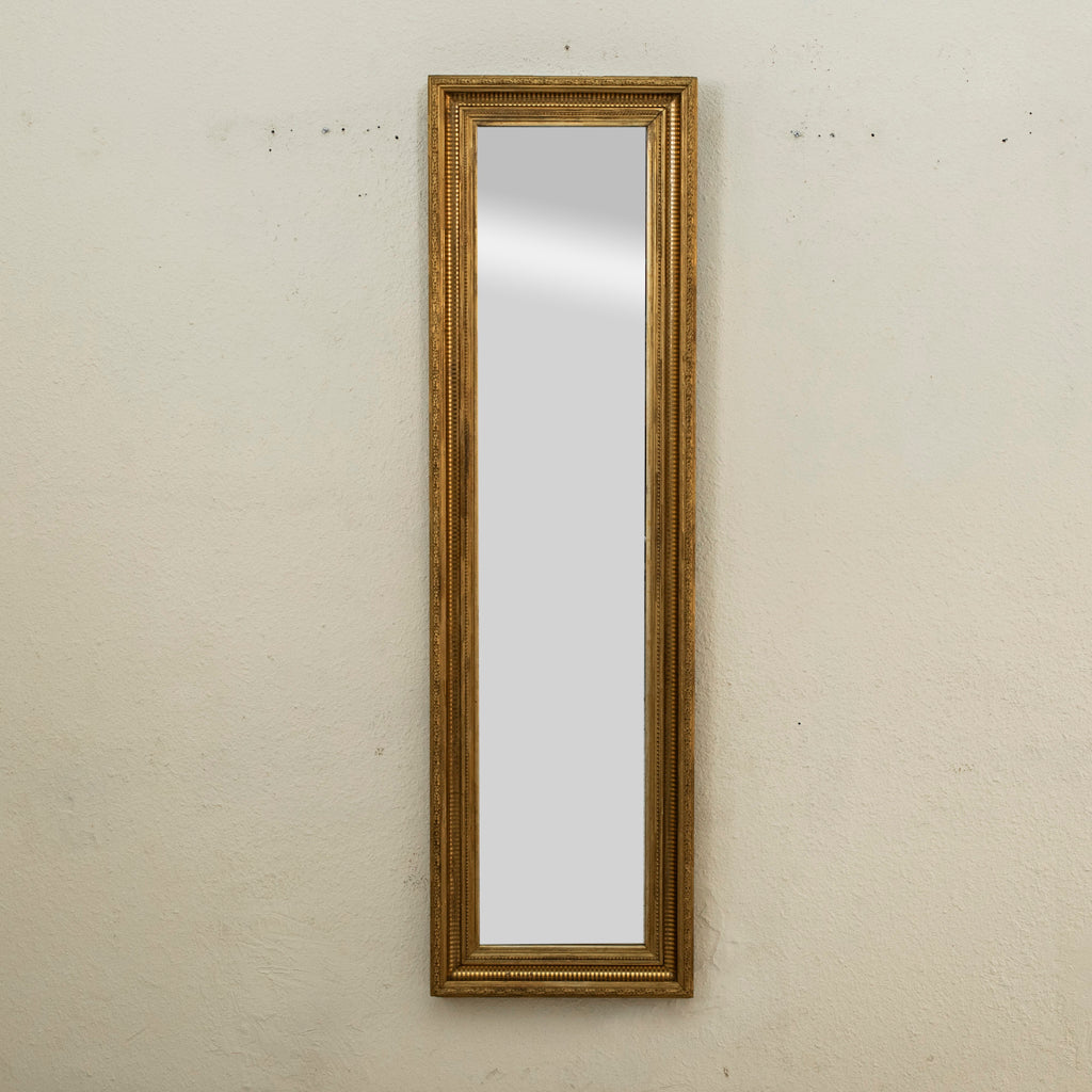 Late nineteenth century Louis XVI style gilt wood mirror, c. 1870. Rare narrow size. 63" H X 18" W