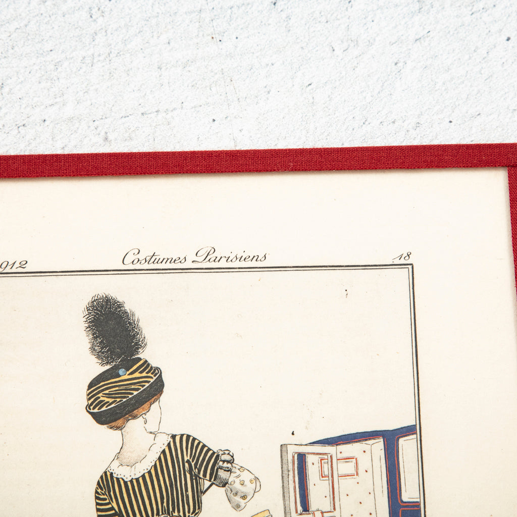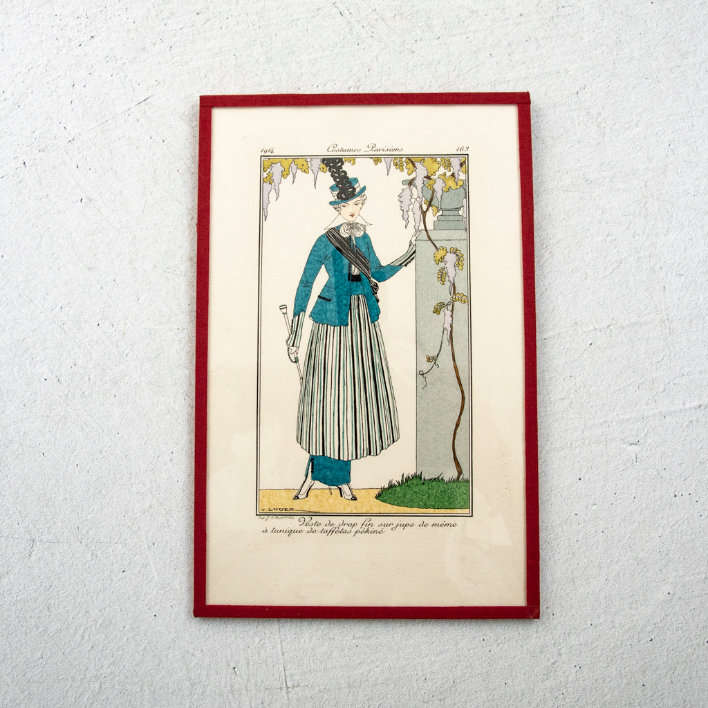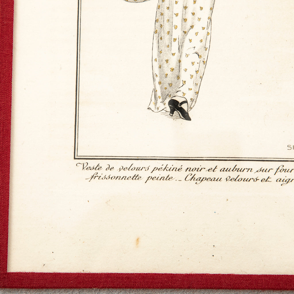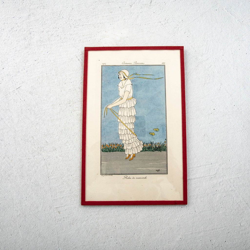 Early twentieth century women's fashion engravings. Each was hand colored with watercolor for the Jardin des Modes, a small booklet given to women to choose dress styles. c. 1910-1915. Six...