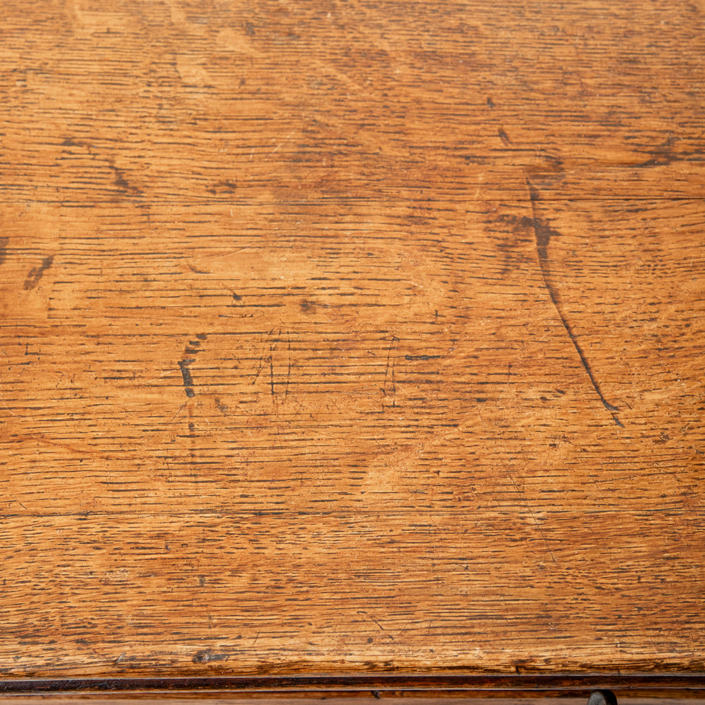 Pitch pine vanity table with white marble top, c. 1900. Two drawers and lower cabinet. Ideal for a sink in a powder bath. 42" H X 39" W X 19.5"...