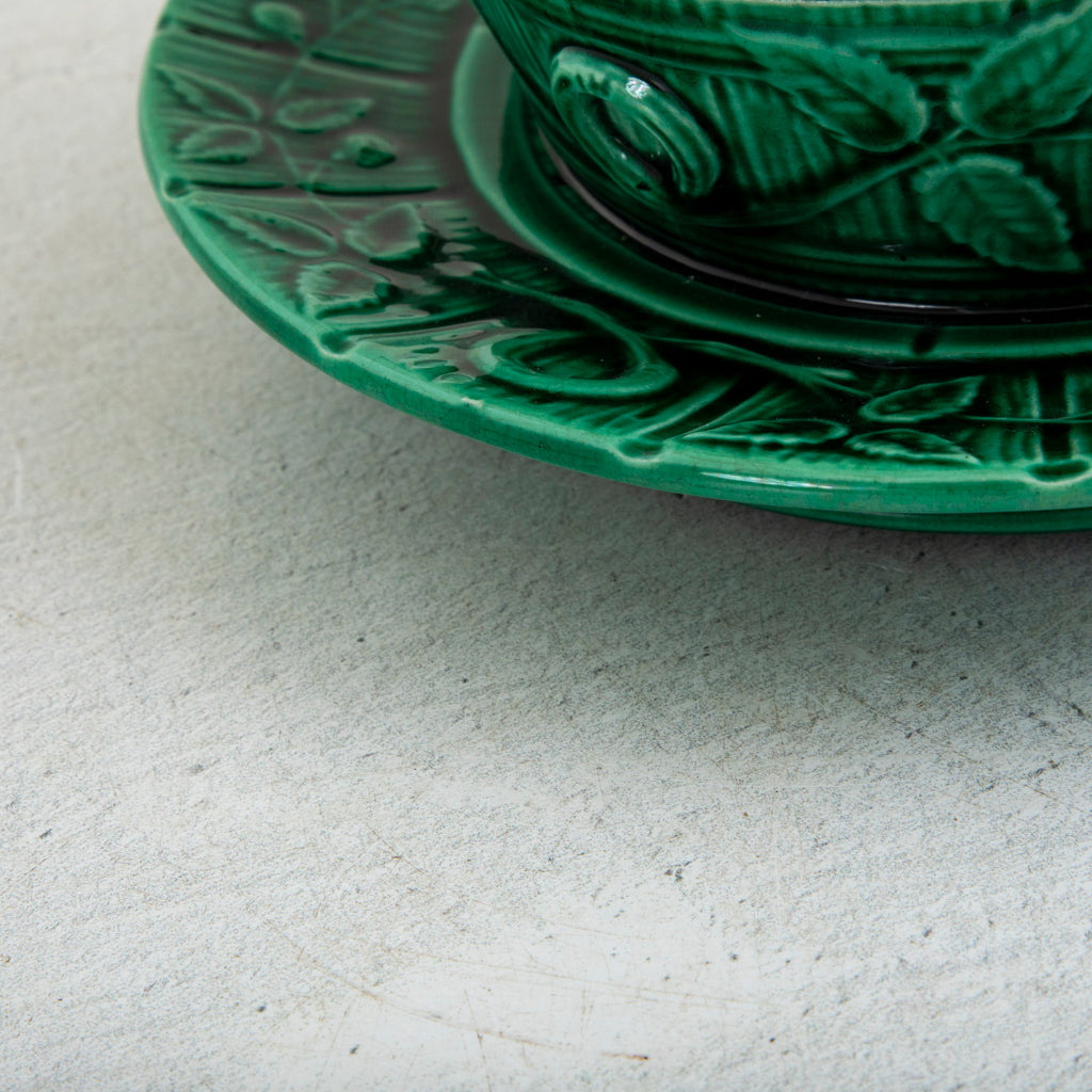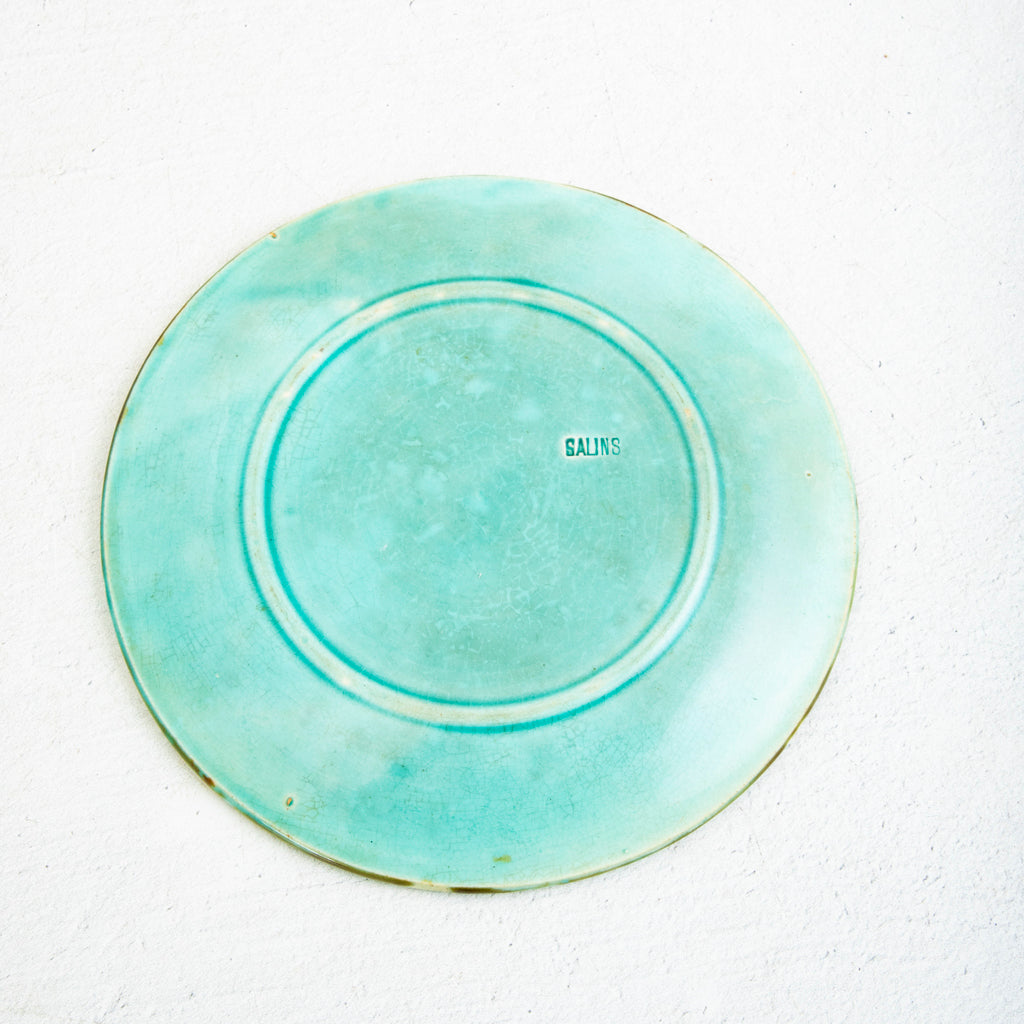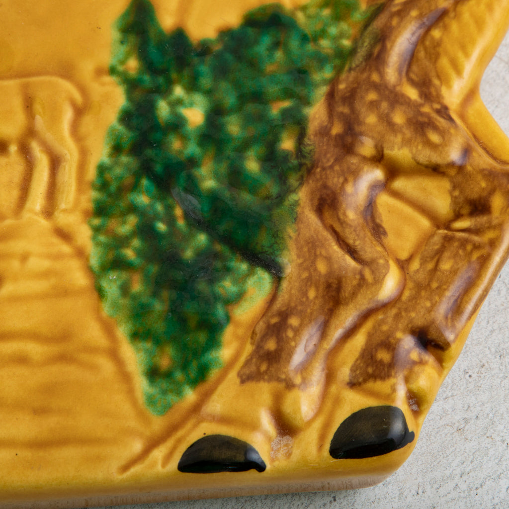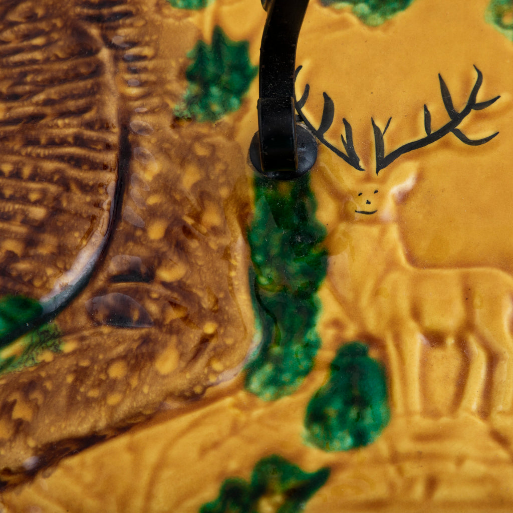 Twentieth century green Majolica plate from Portugal with wild boar. 8" Diameter