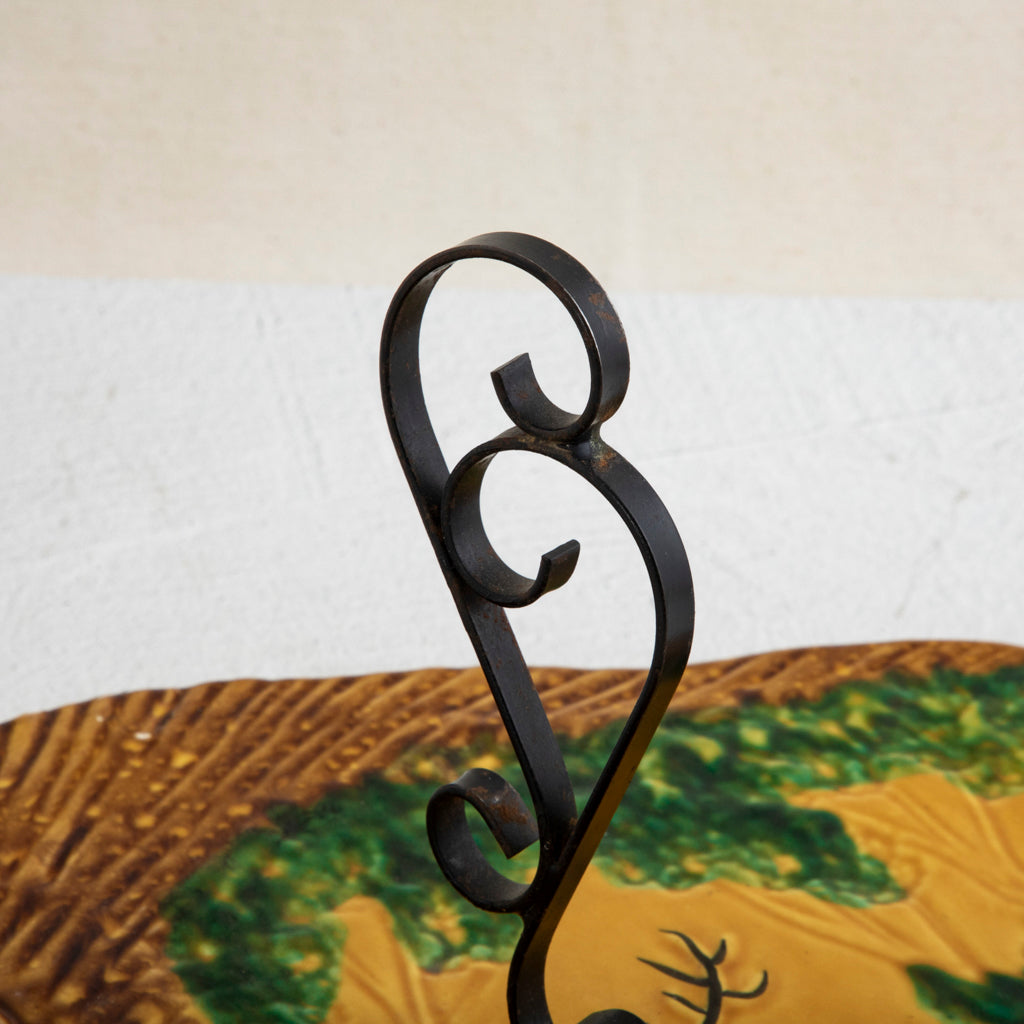 Hand forged iron trivet with fleurs de lys. 5" H X 8.75" Diameter