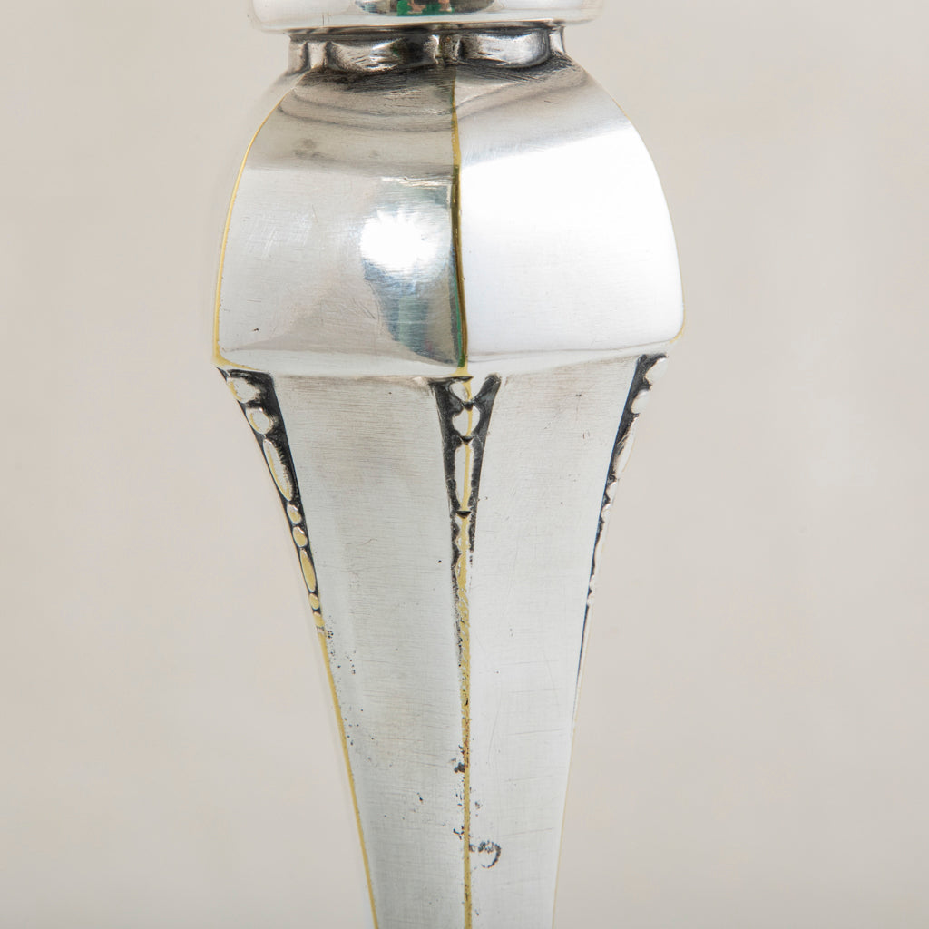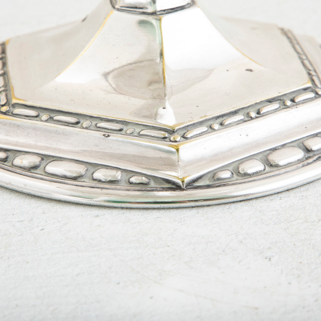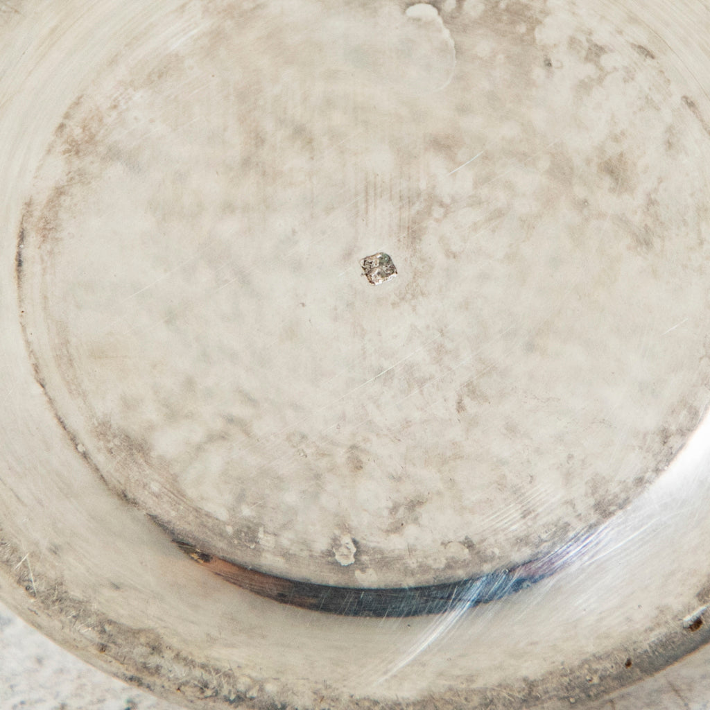 Art Deco period tall silver plate coupe with original etched glass insert, c. 1920. 12" H X 8.75" Diameter