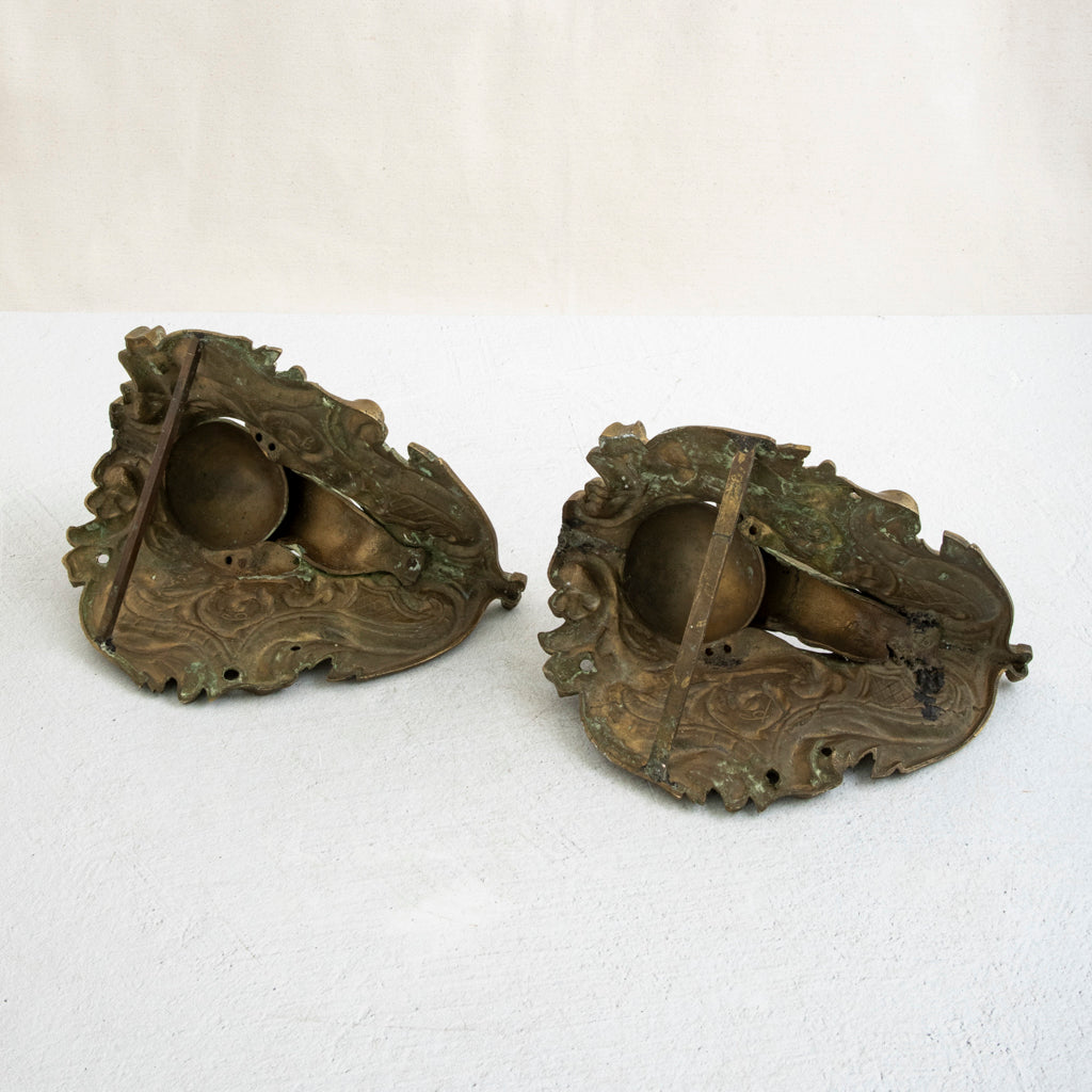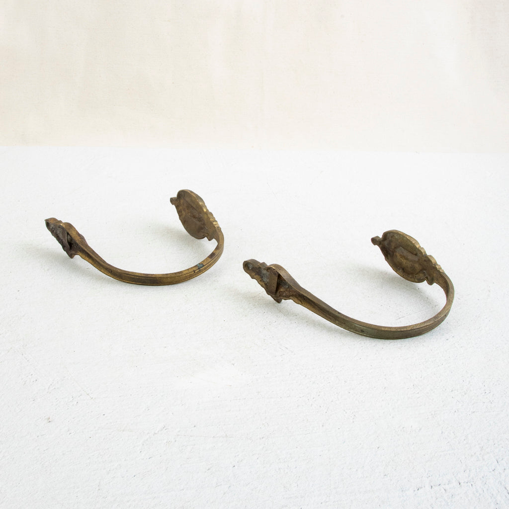 Pair of bronze hooks with cartouche. 5.5" H X 1.75" W X 4.75" D