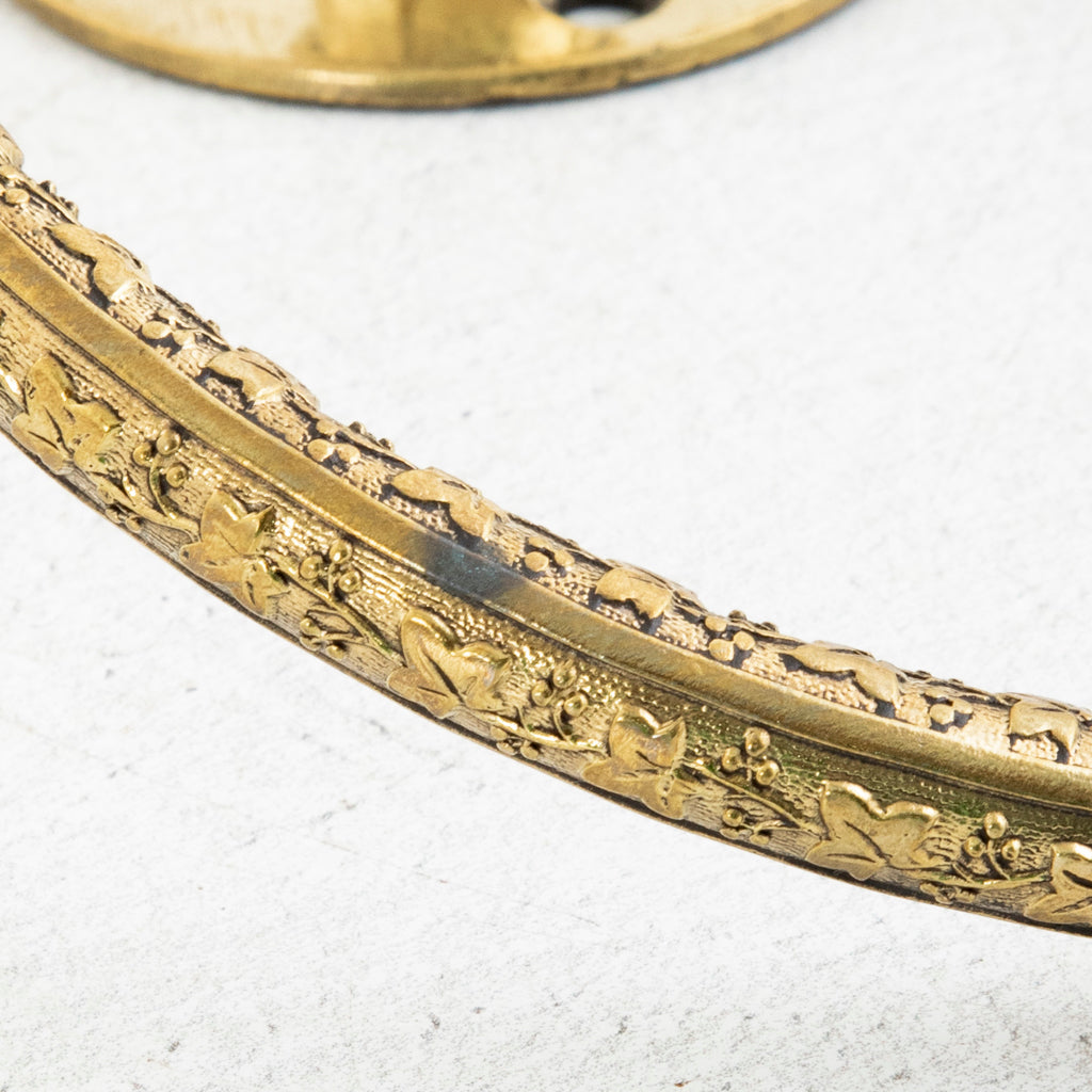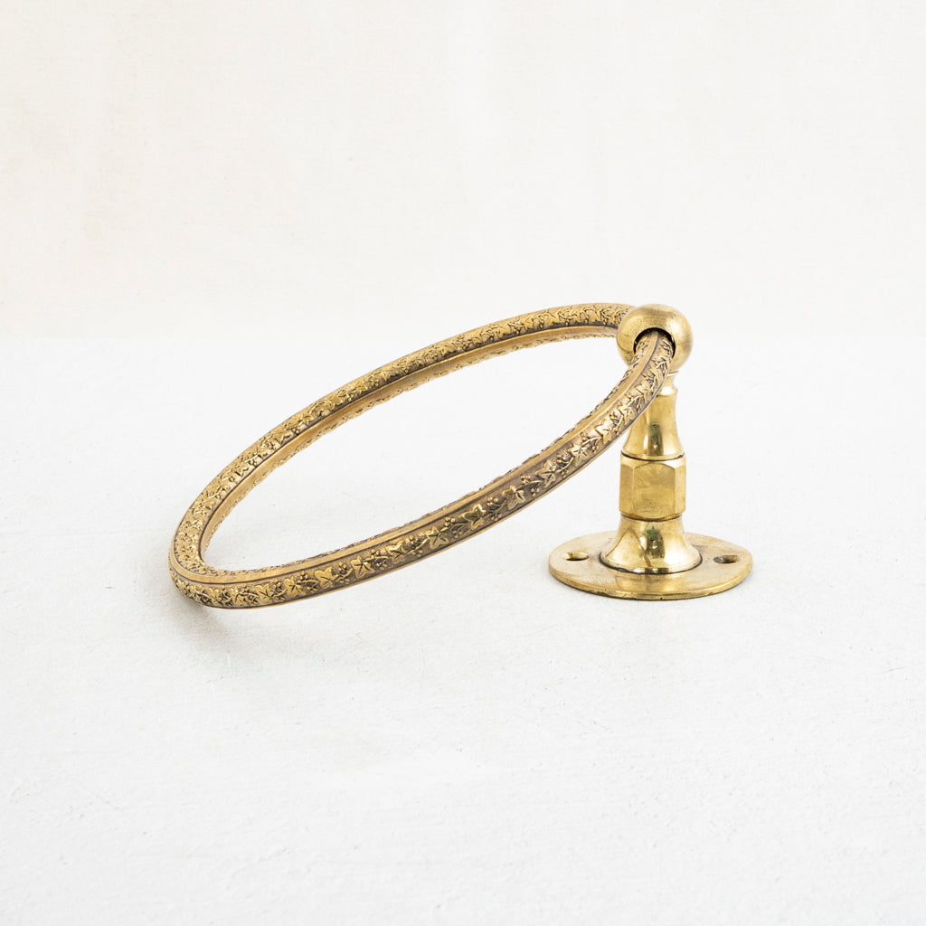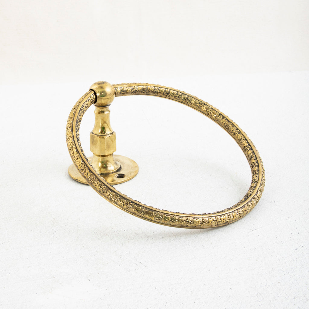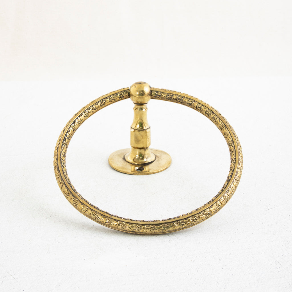 Twentieth century brass towel ring with ivy motif. Two available. Sold separately. 8" H 7" Diameter ring