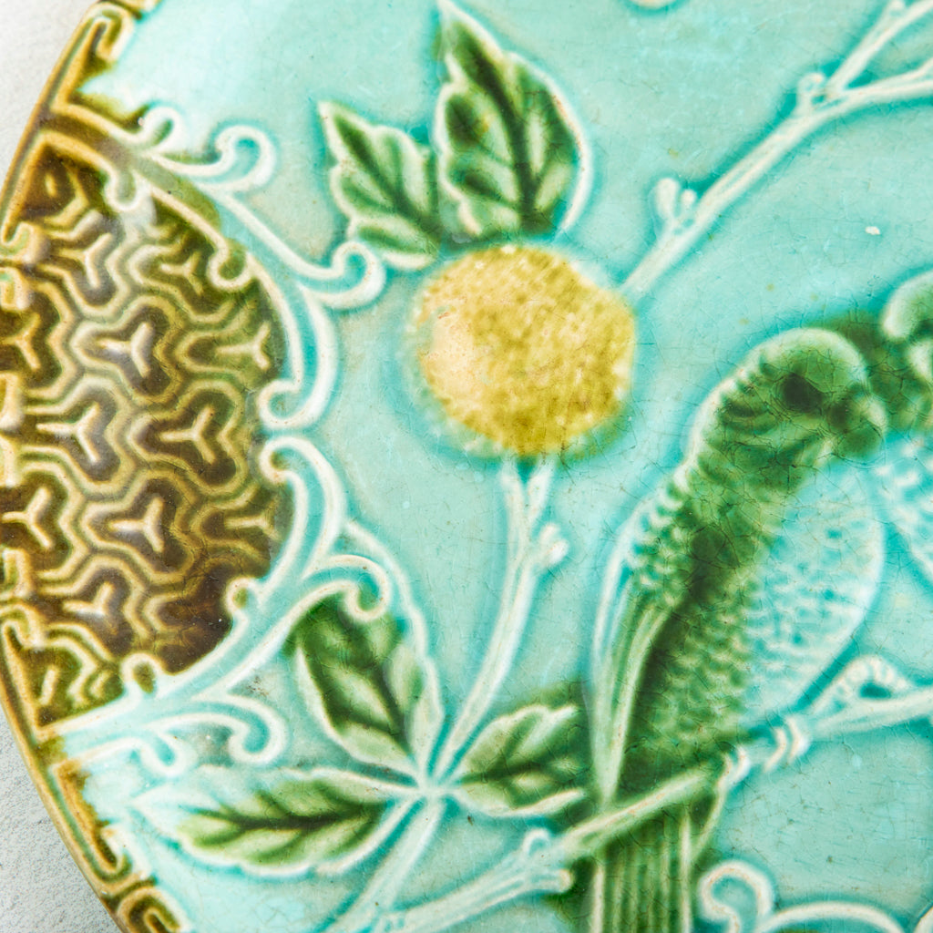 Nineteenth century Majolica plate with parakeets. 8" Diameter