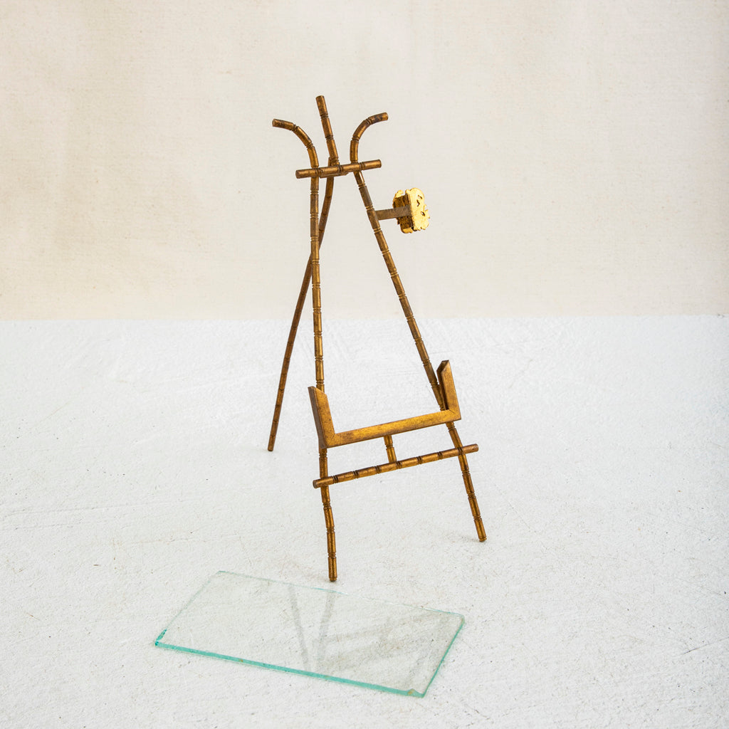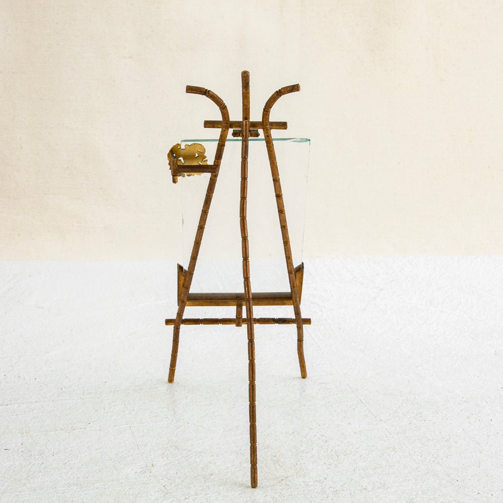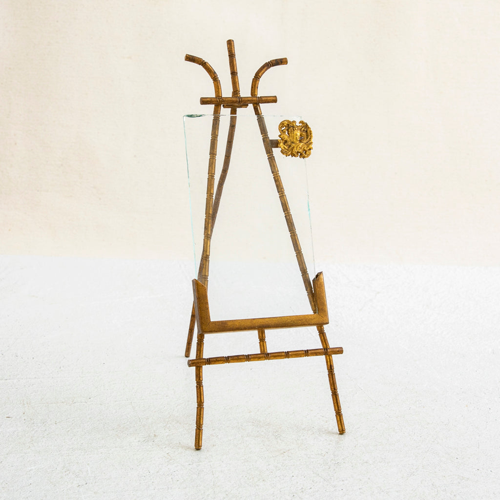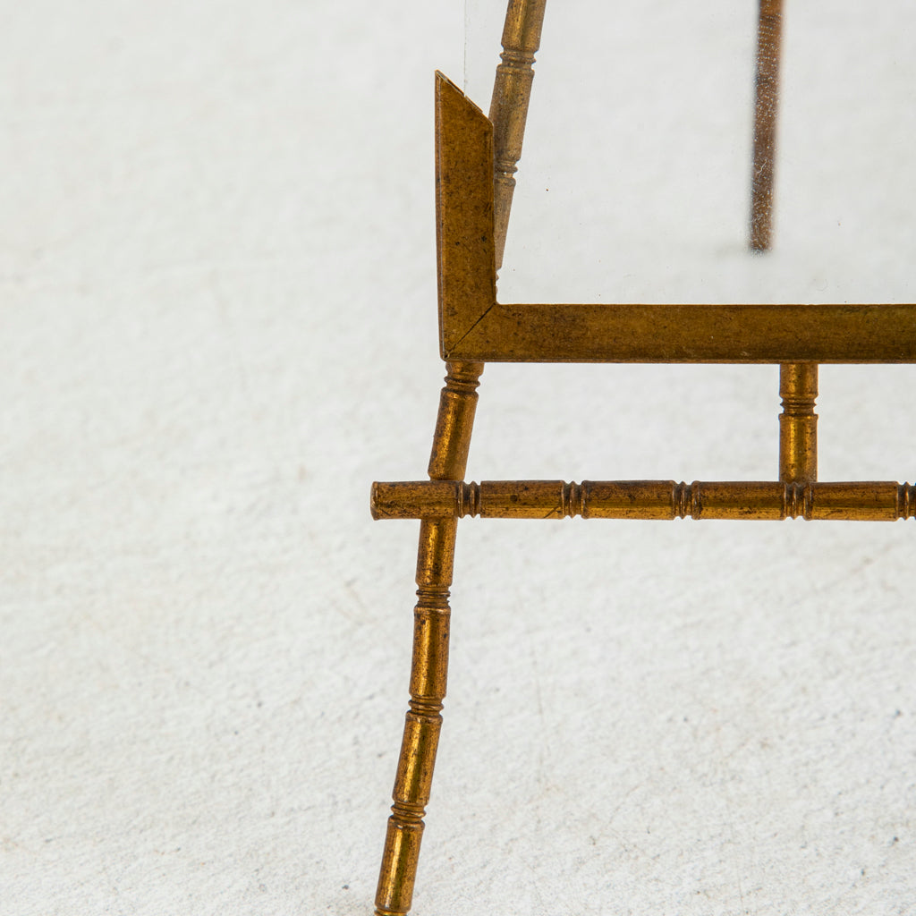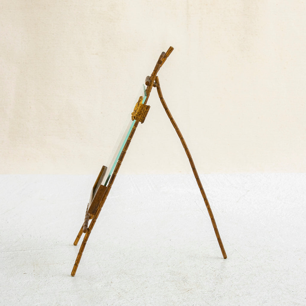 Late nineteenth century crystal and bronze photo frame with faux bamboo easel and bronze medallion, c. 1890. 8" H X 3" W