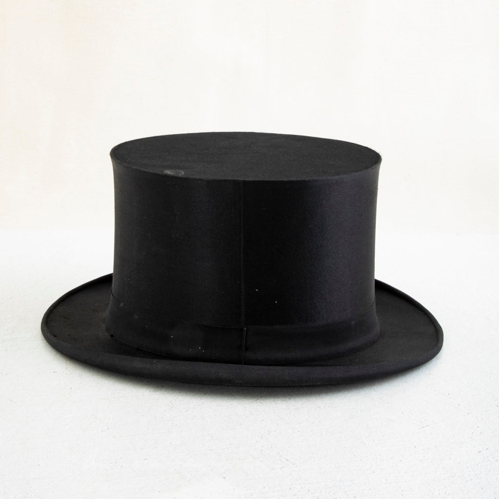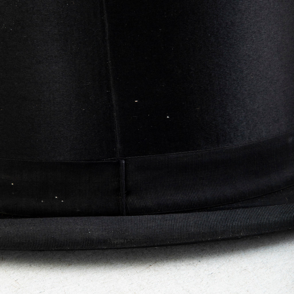 Early twentieth century silk top hat. Marked R Dauphin, maitre chapelier, a haberdashery founded in the city of Flers, France in 1856. 5" H X 12" L X 10"...