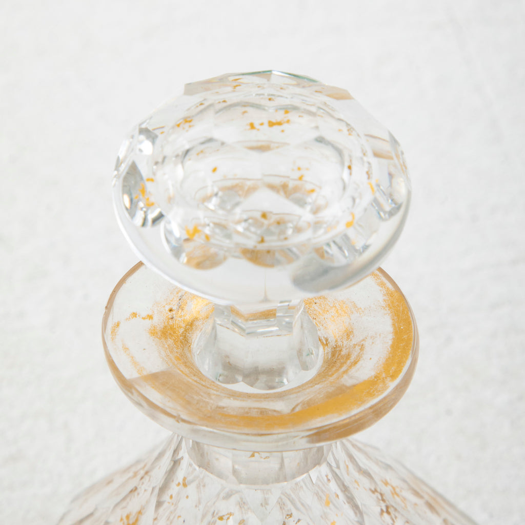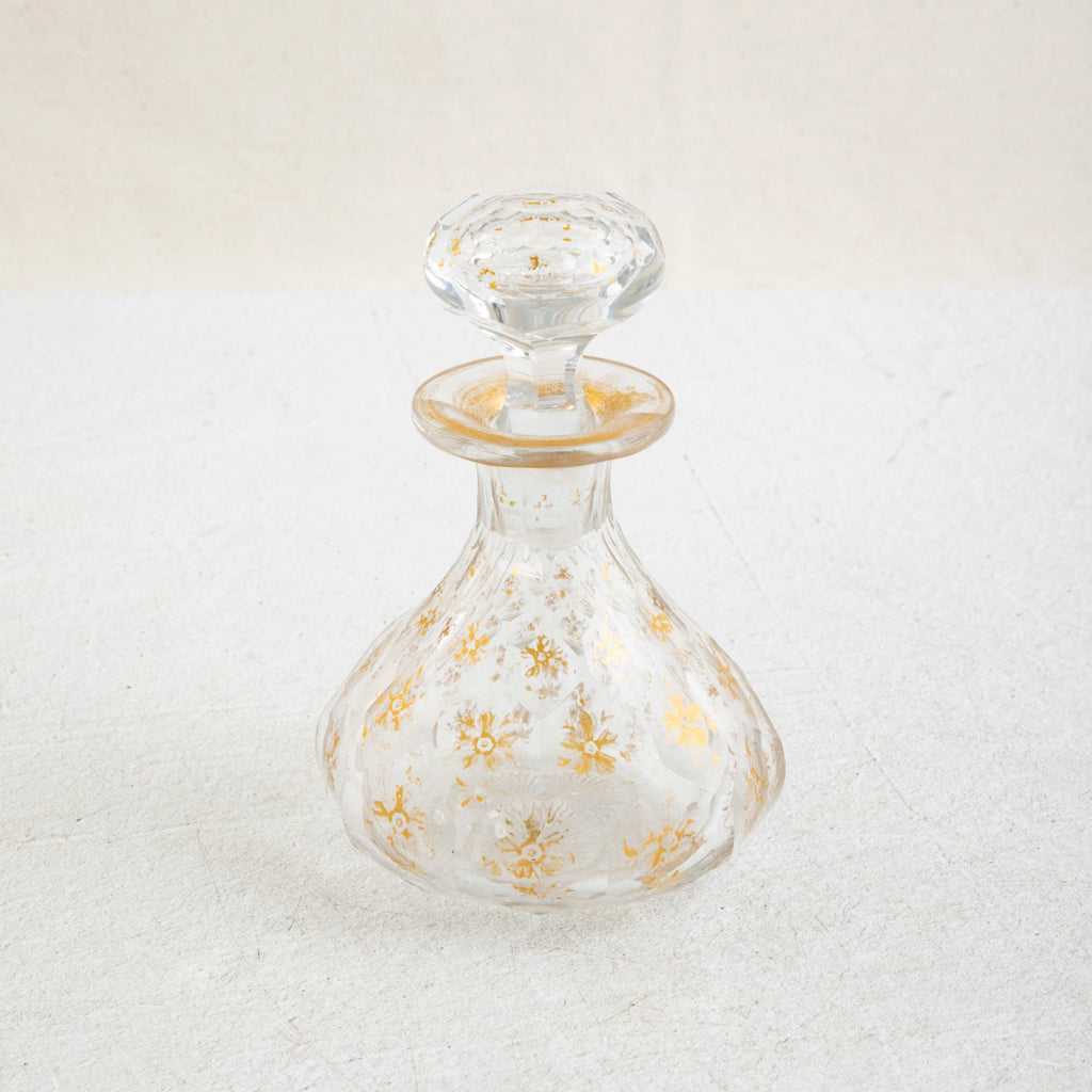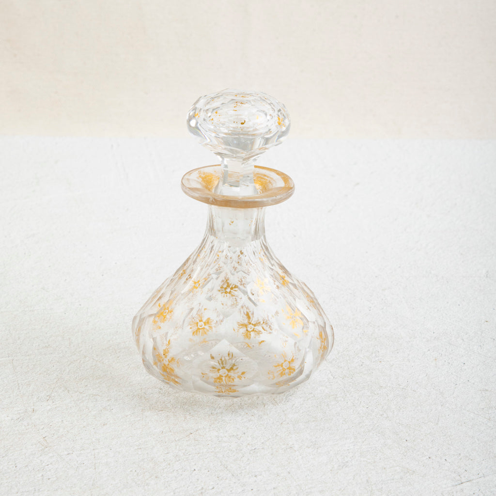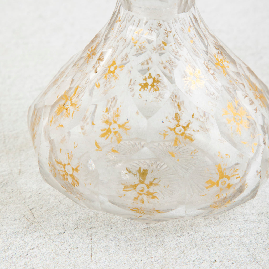 Nineteenth century crystal bottle with stopper and hand painted gold details. 5" H X 3.25" Diameter