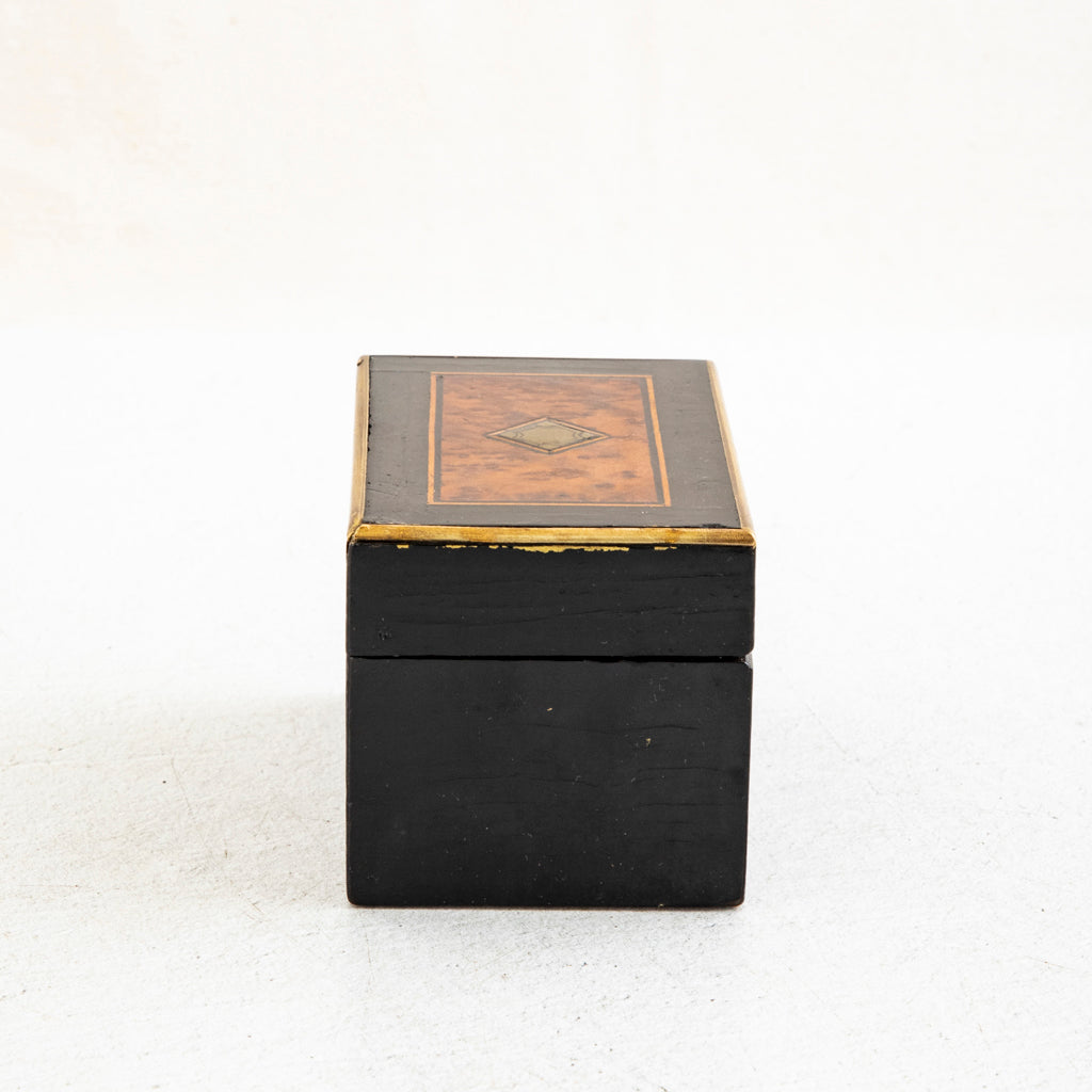 Nineteenth century marquetry box. Thuya wood, palisander, and ebonized pearwood with bronze inlay. Tufted blue silk interior. Signed by the renowned cabinet maker Tahan, the official cabinet maker of Emperor...