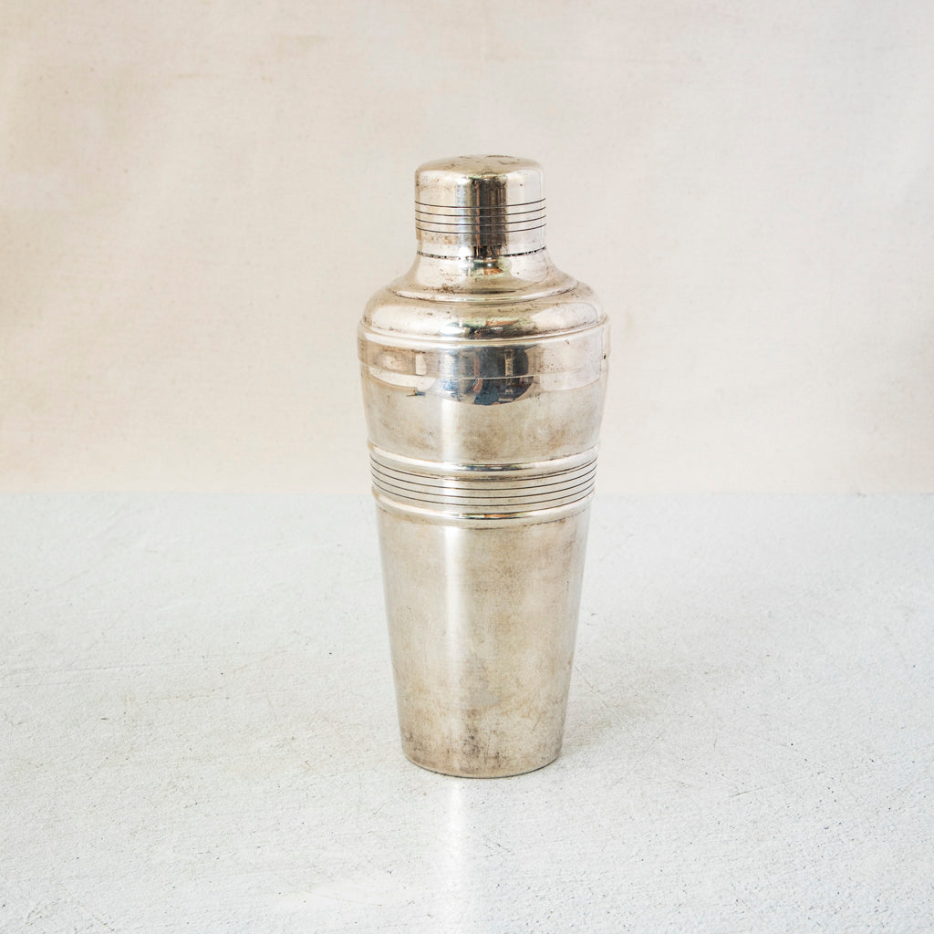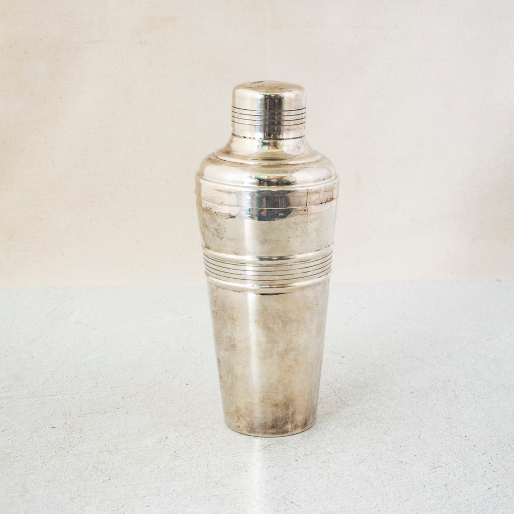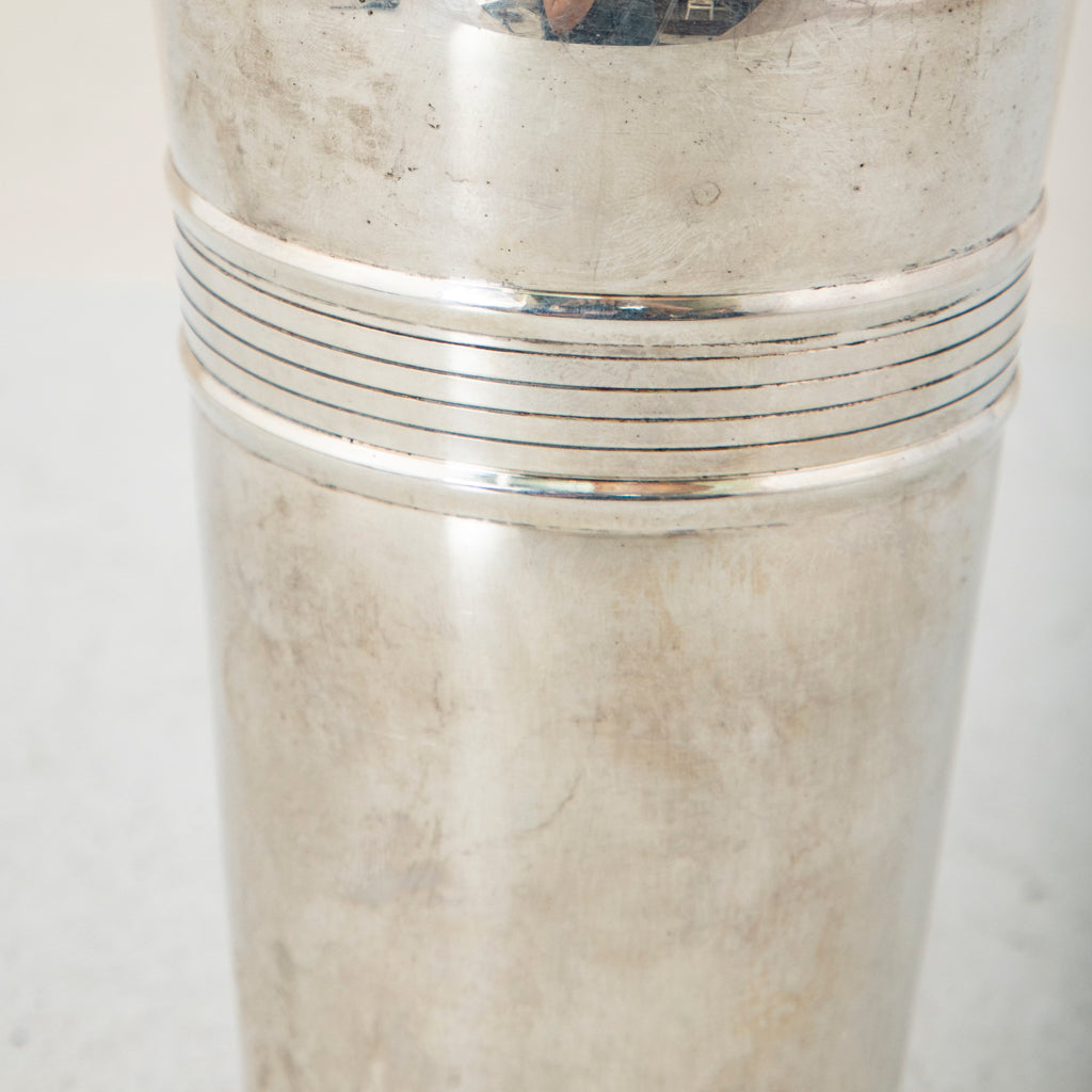 Twentieth century silver plate cocktail shaker. 9" H X 3.5" Diameter