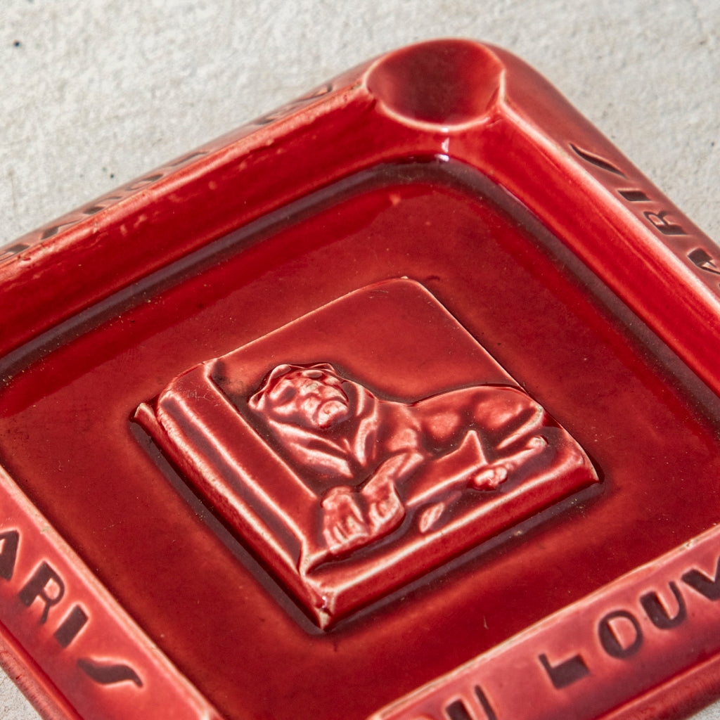 Early twentieth century ceramic ashtray with lion, marked Paris Au Louvre. 4.5" Square