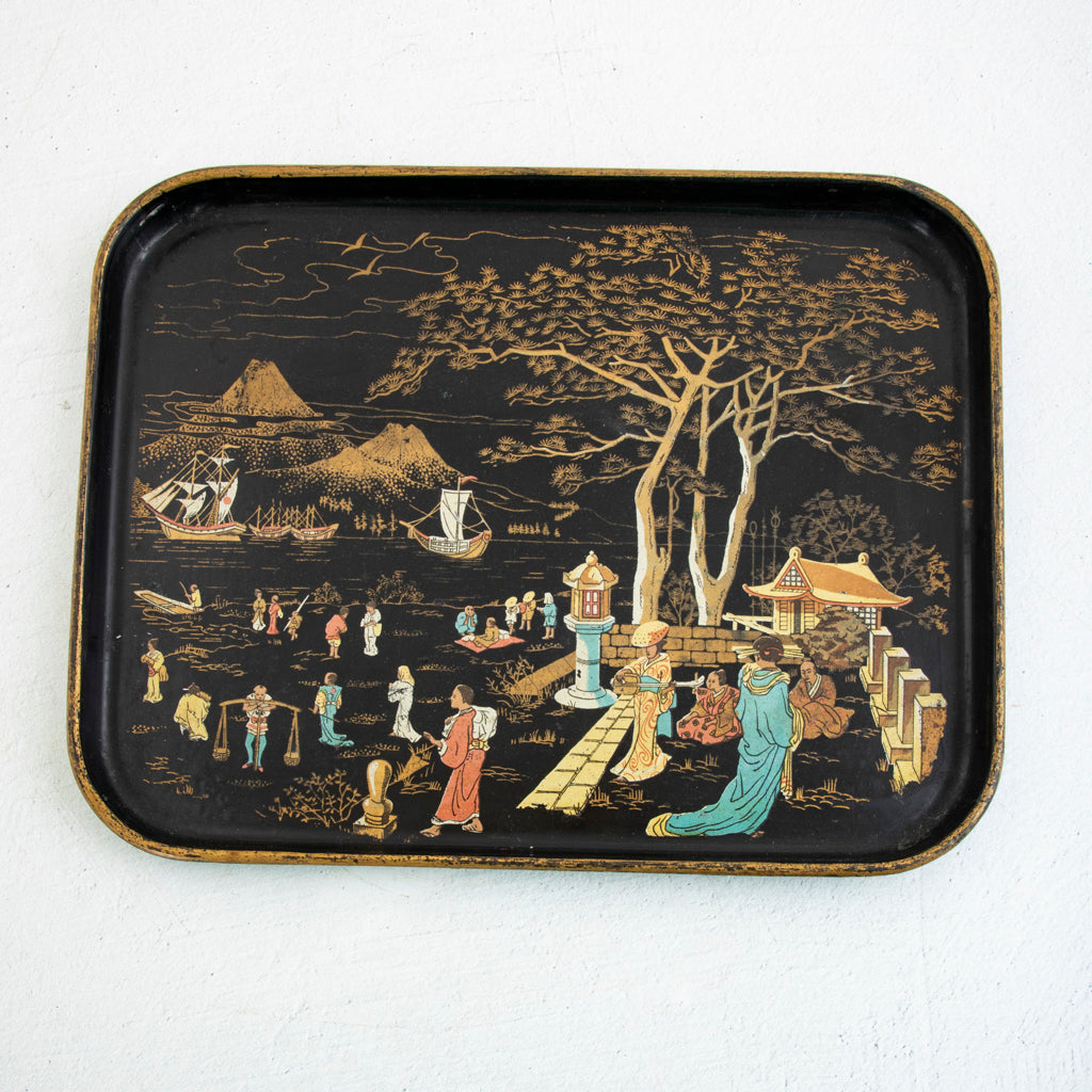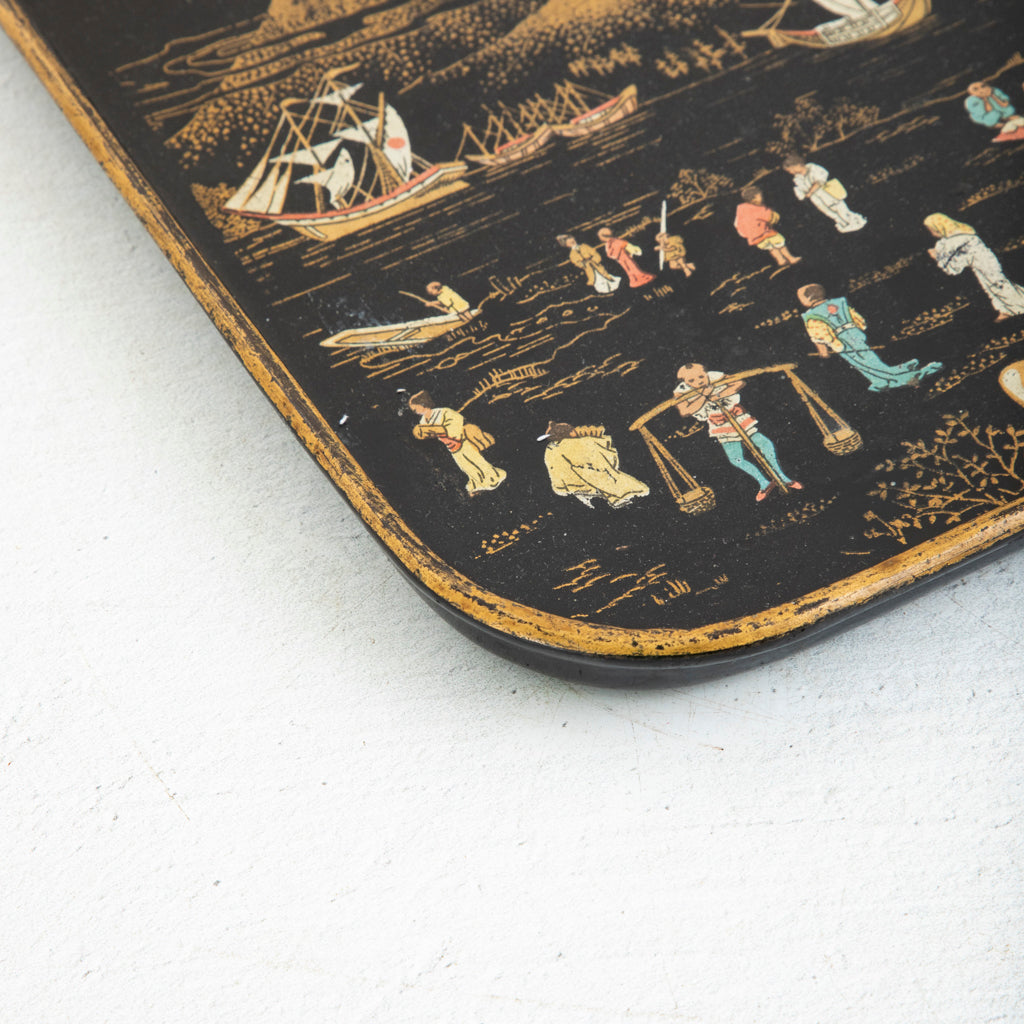 Napoleon III papier mache chinoiserie tray, c. 1860. 13.5" L X 10.5" W