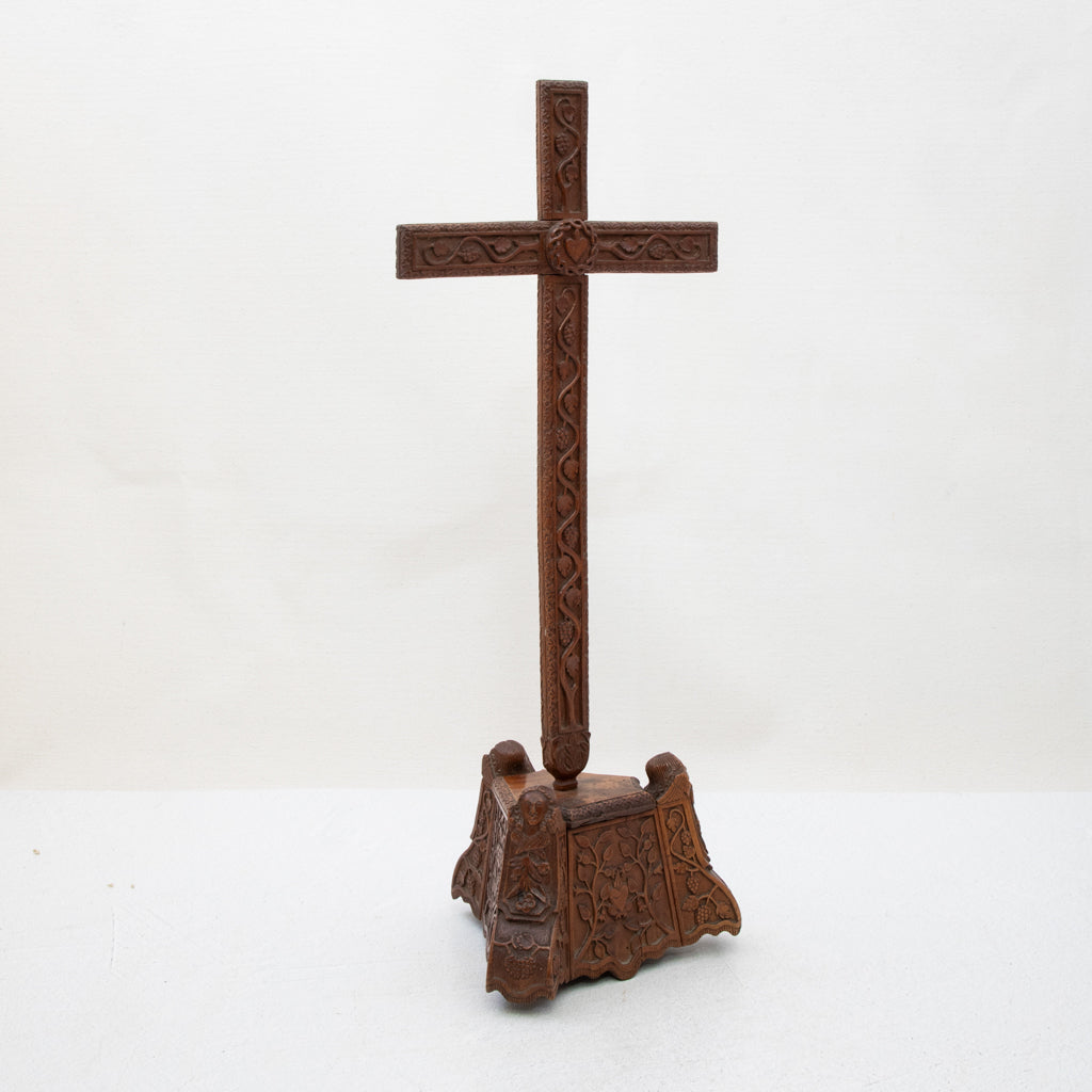Late nineteenth century rustic marquetry box, c. 1890. Oak with inlaid ebonized pearwood star and checkerboard pattern on all four sides. 9.75" L X 5.75" W X 4" H ...
