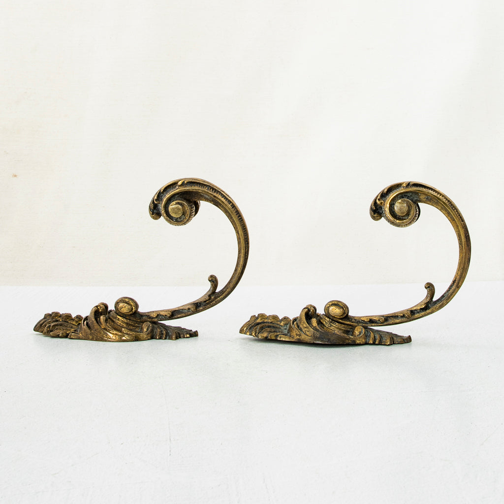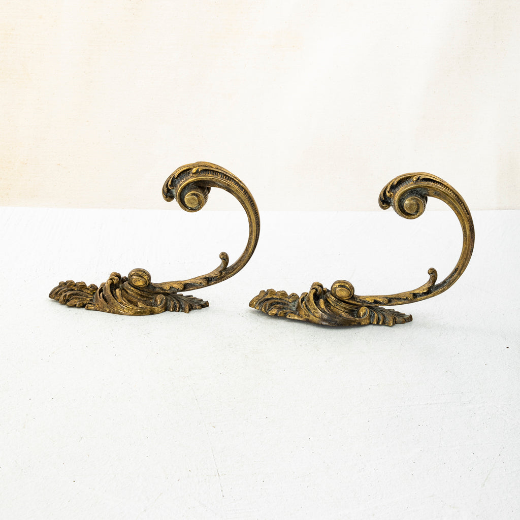 Pair of late nineteenth century bronze hooks with scrolling leaves. 9" H X 2.25" W X 6" D