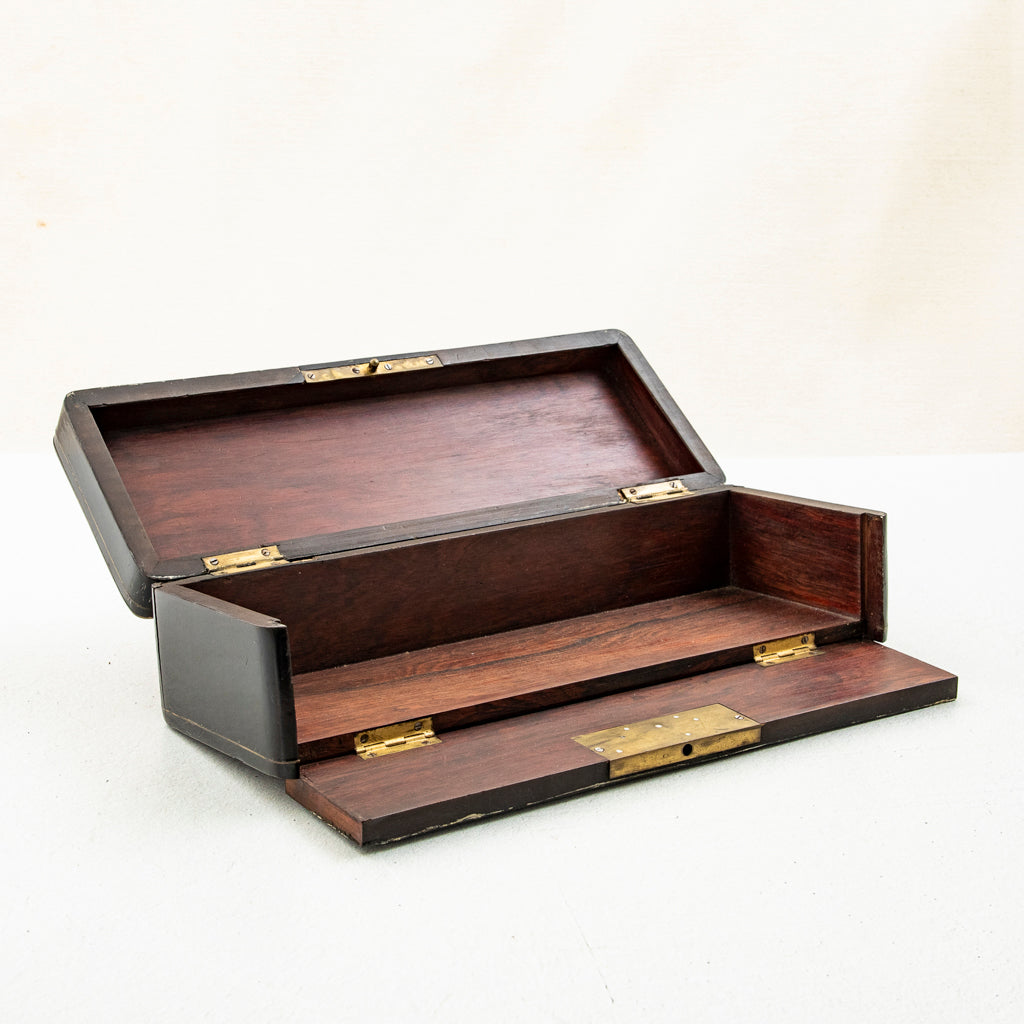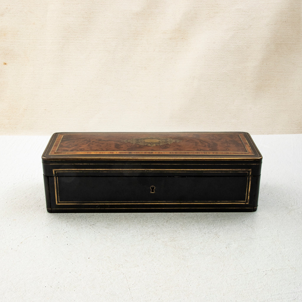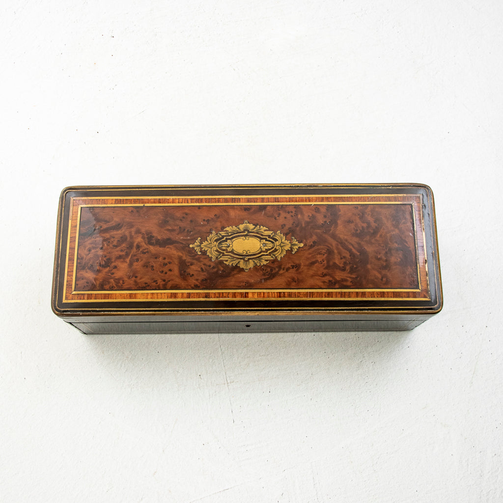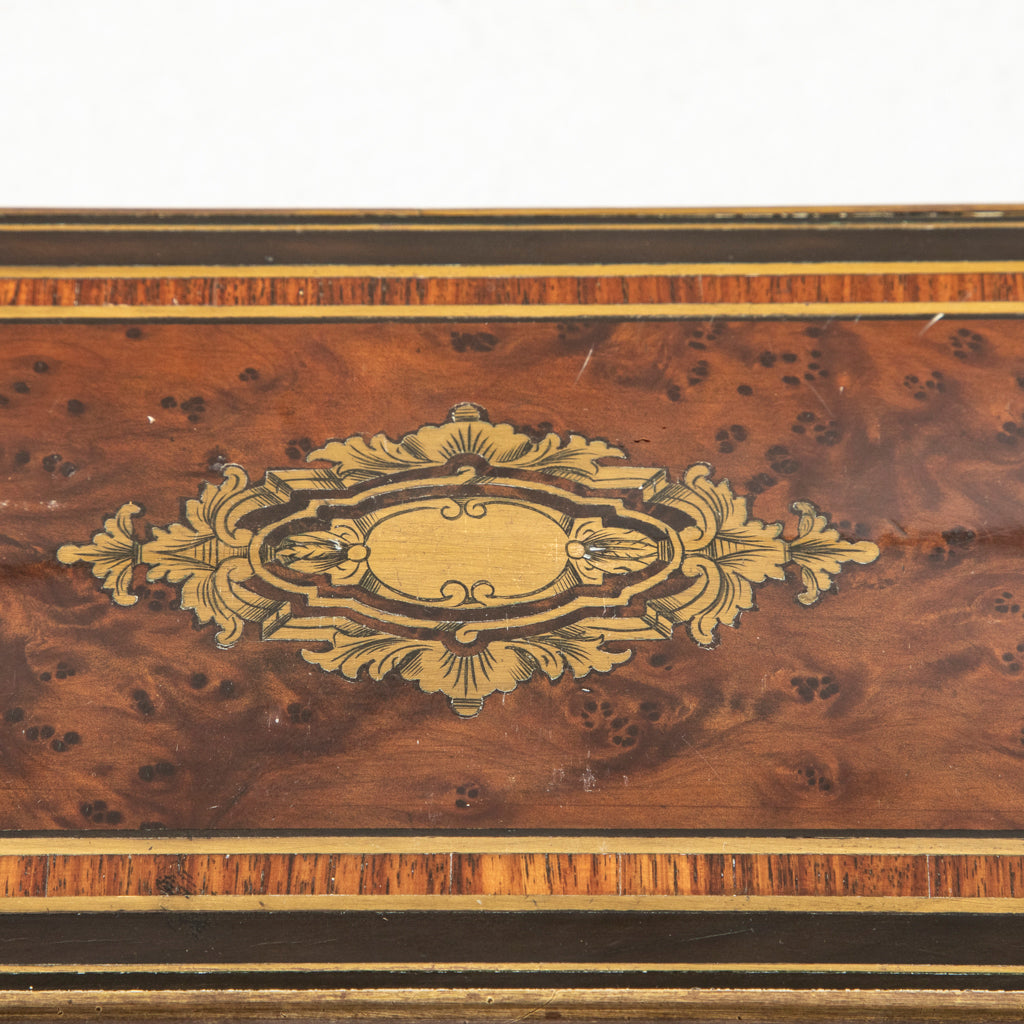Mid nineteenth century Napoleon III period marquetry glove box with bronze inlay, c. 1860. Thuya, rosewood, and inlaid bronze. No key. 3.25" H X 11.5" W X 4" D ...