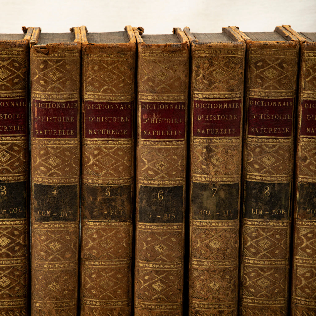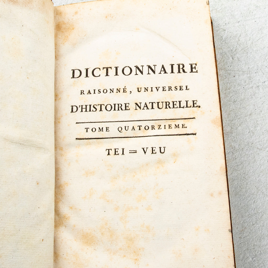 Set of thirteen early nineteenth century leatherbound books entitled Dictionnaire d'Histoire Naturelle (Encyclopedia of Natural History). c. 1800.