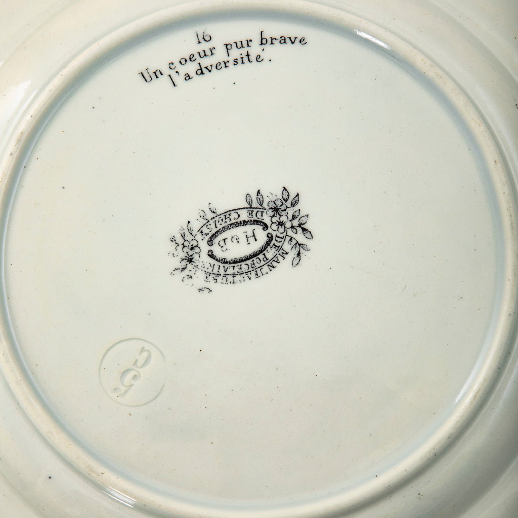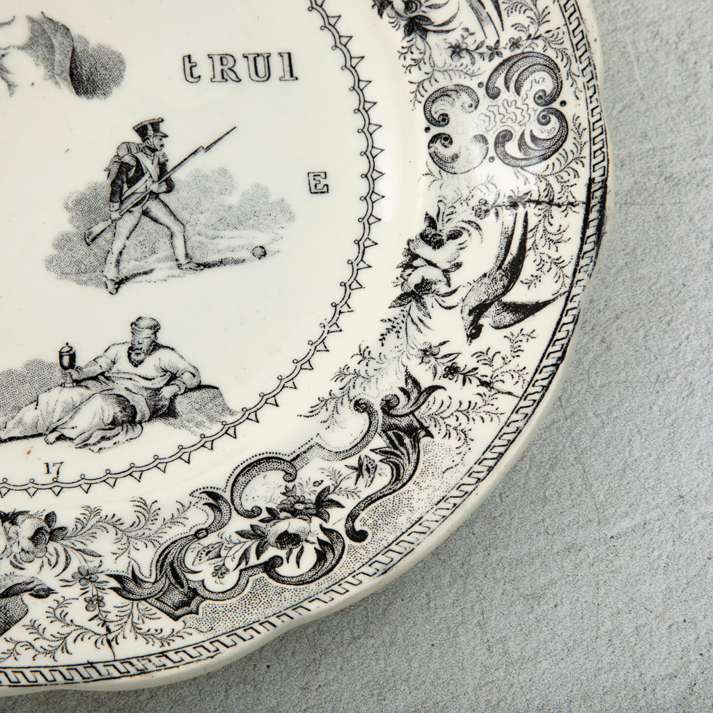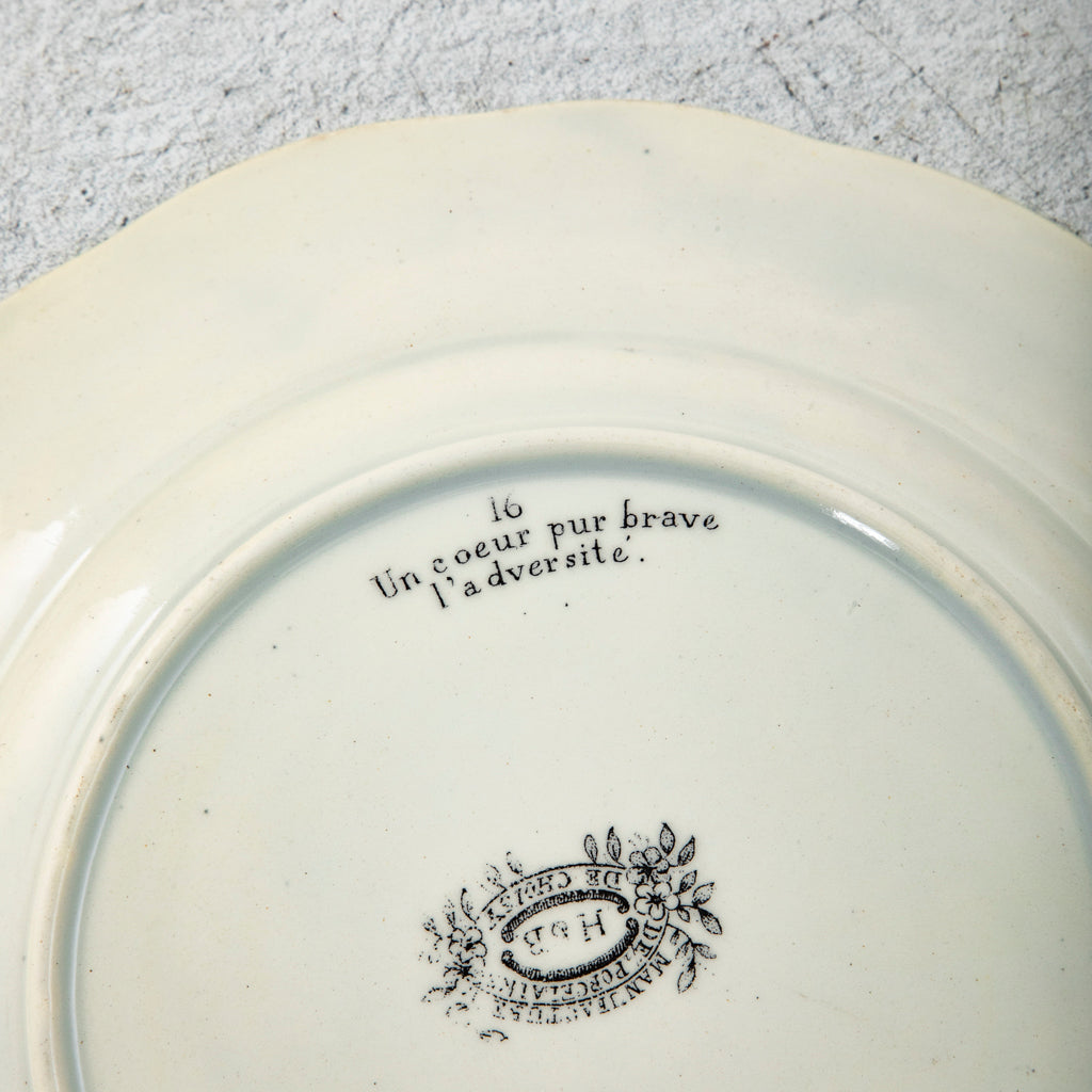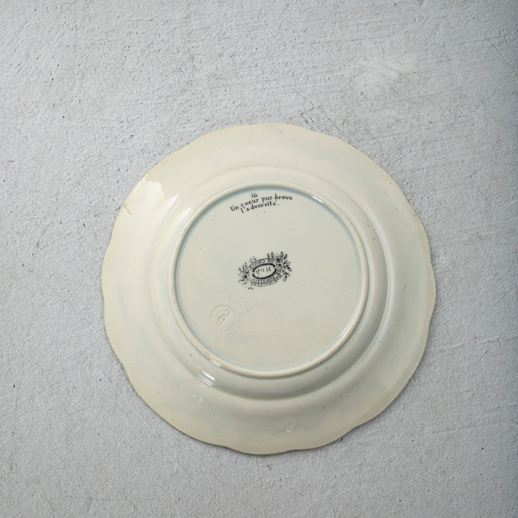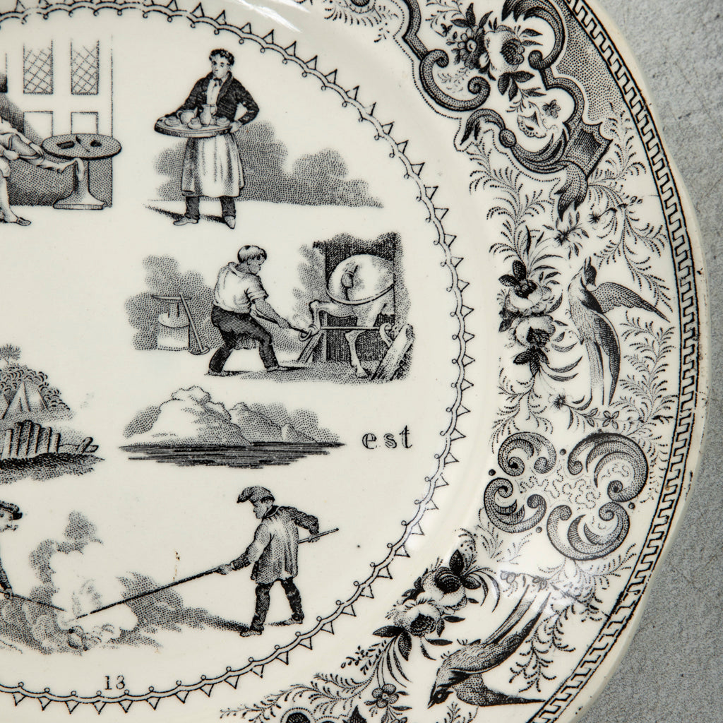 Set of eight late nineteenth century black and white faience rebus plates. A rebus is a puzzle in which words are represented by combinations of pictures and individual letters. Used...