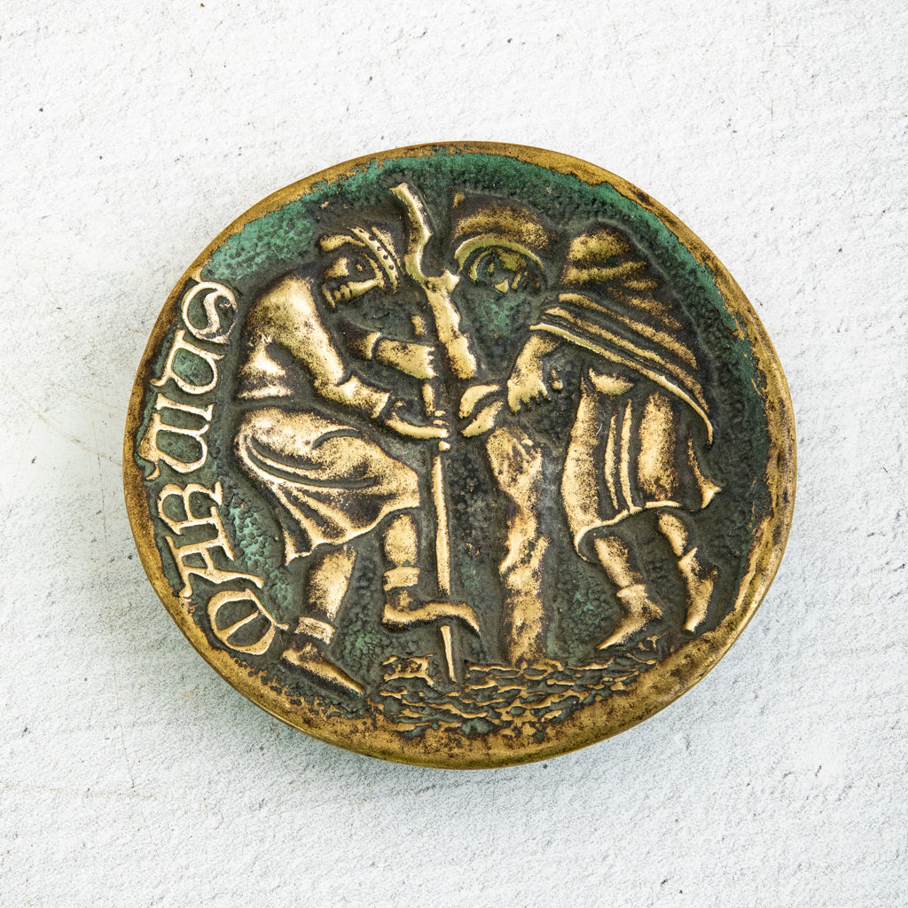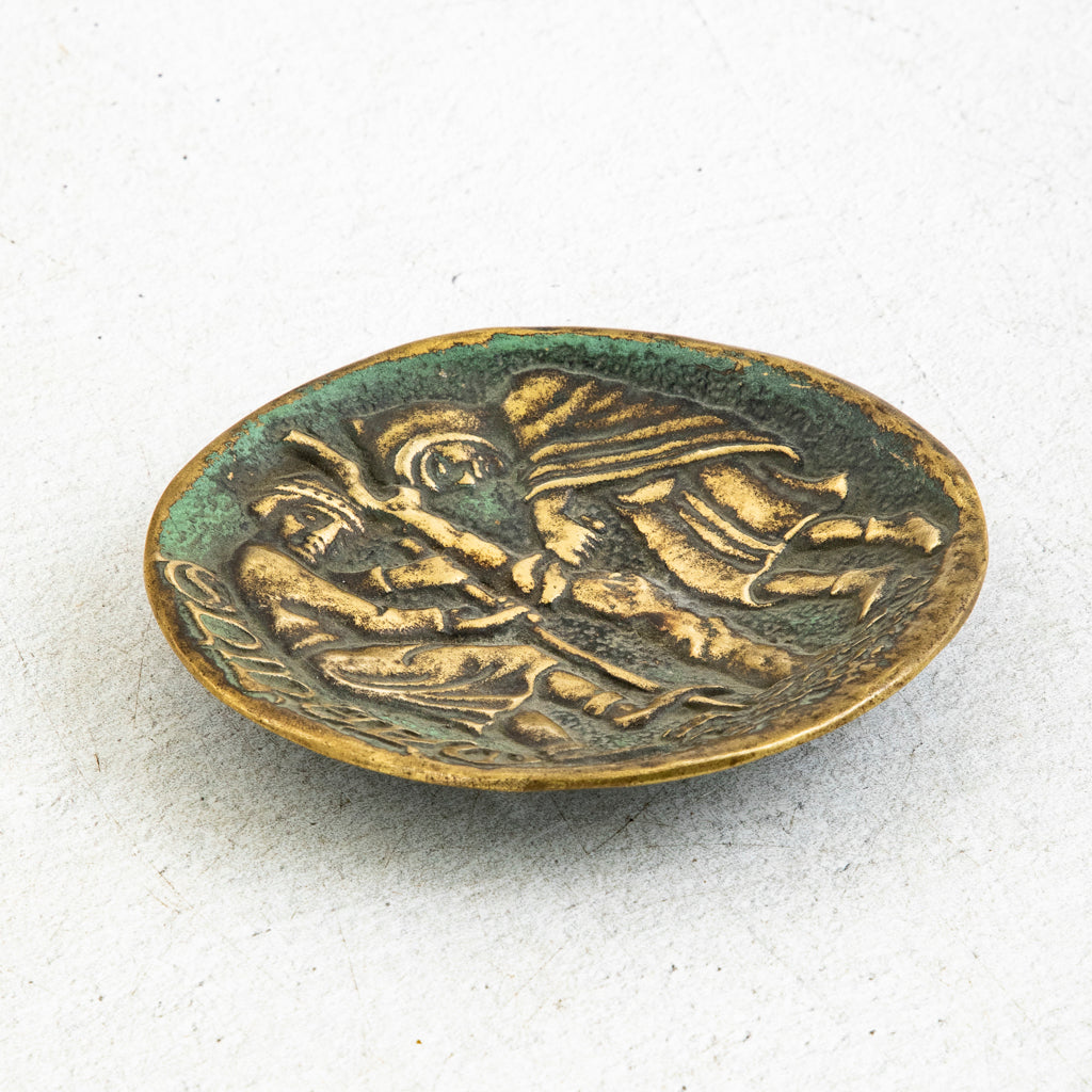Art Deco period bronze vide poche with medieval peasants and marked Mars (month of March in French). Signed Max Le Verrier. Used to empty one's pockets of loose change. c....