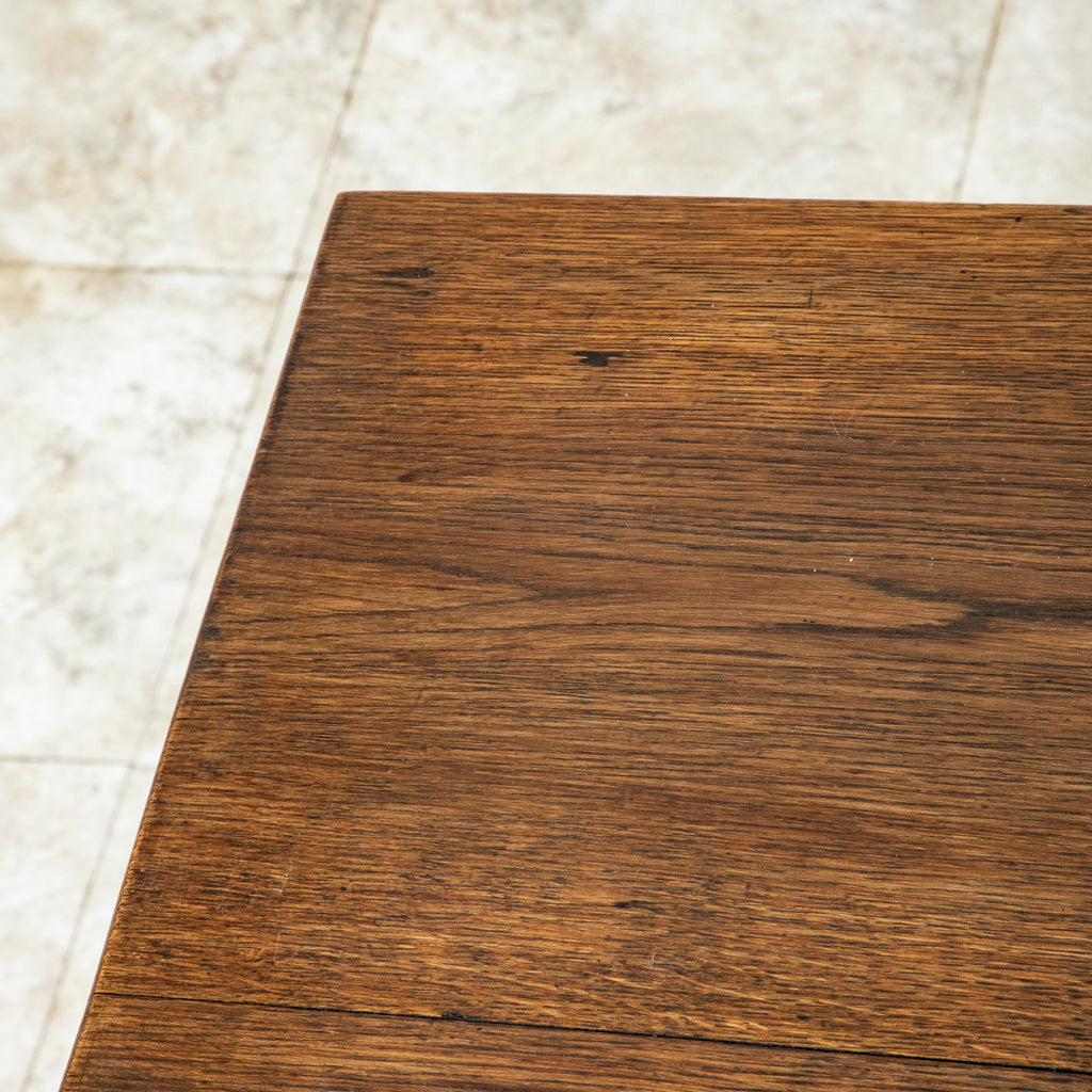 Early twentieth century oak writing table with single drawer, c. 1920. 29" H X 45.25" W X 24.5" D 23.75" H floor to apron