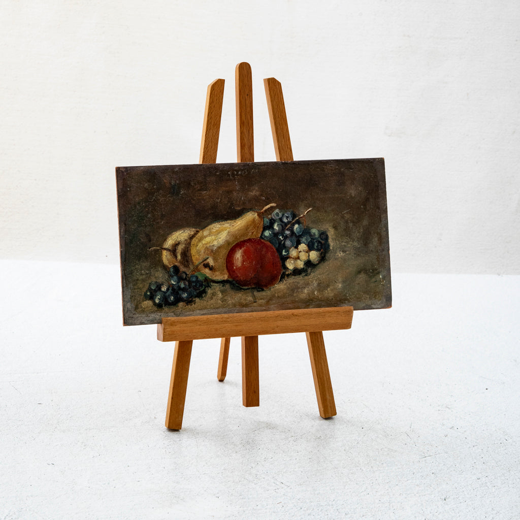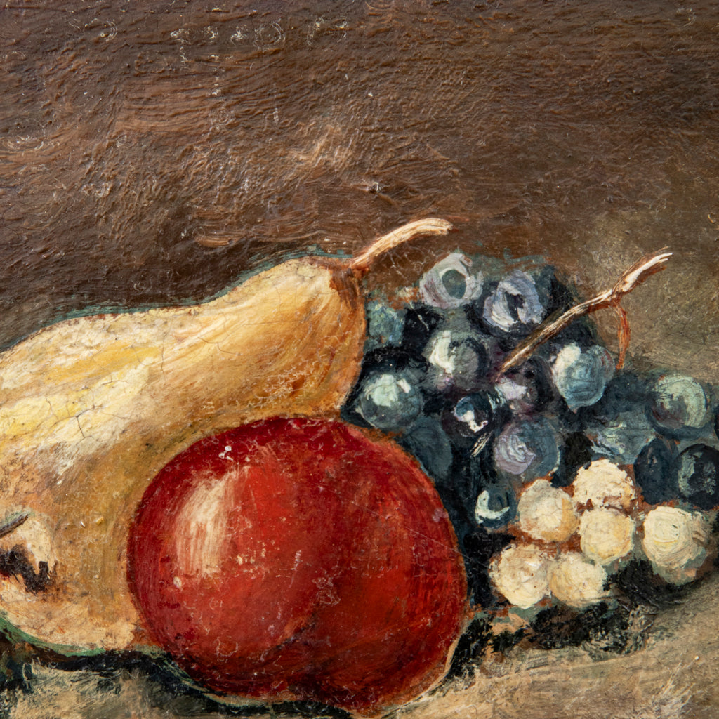 Small late nineteenth century oil on panel. Still life with fruit. 3.75" H X 7" W