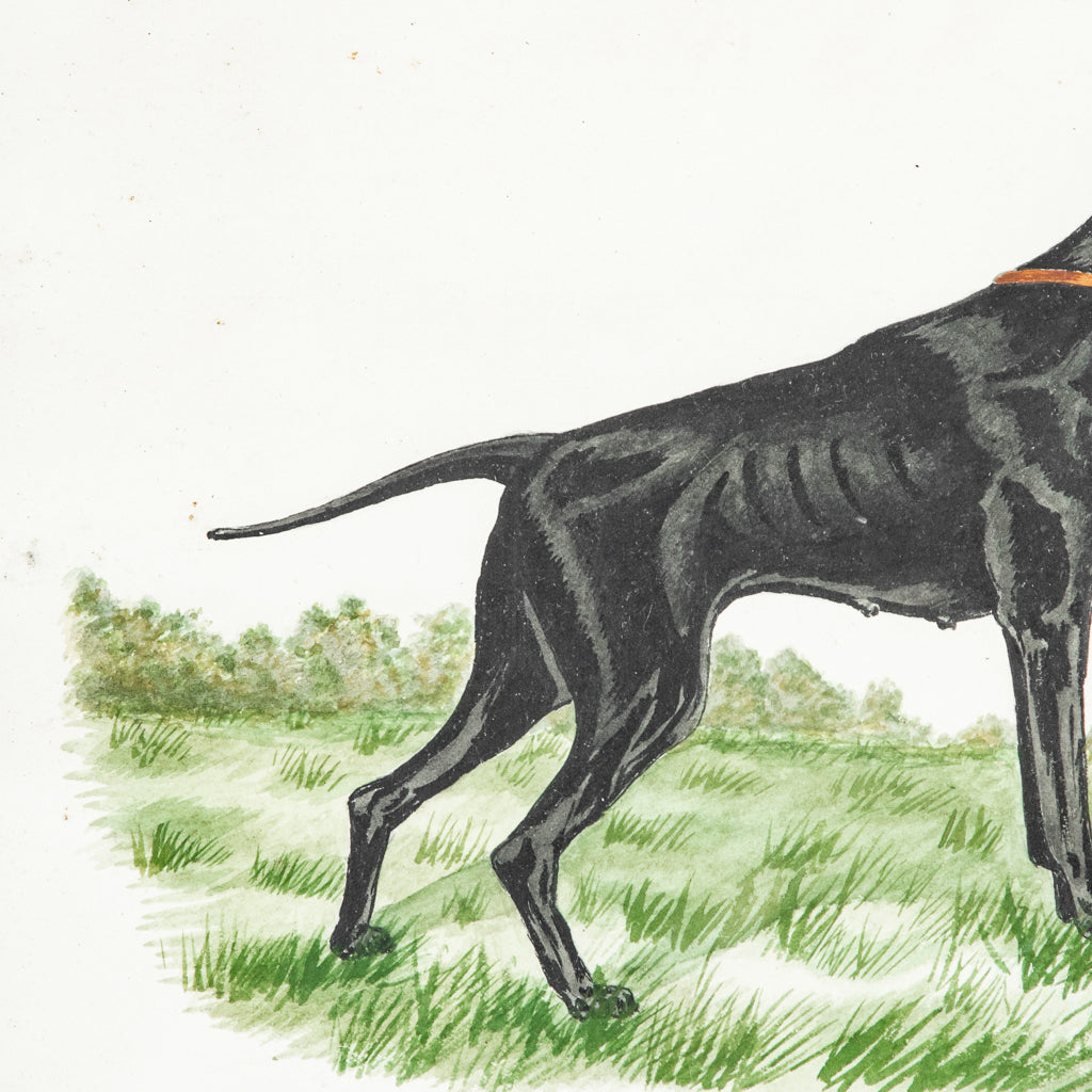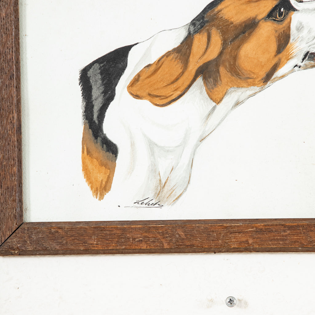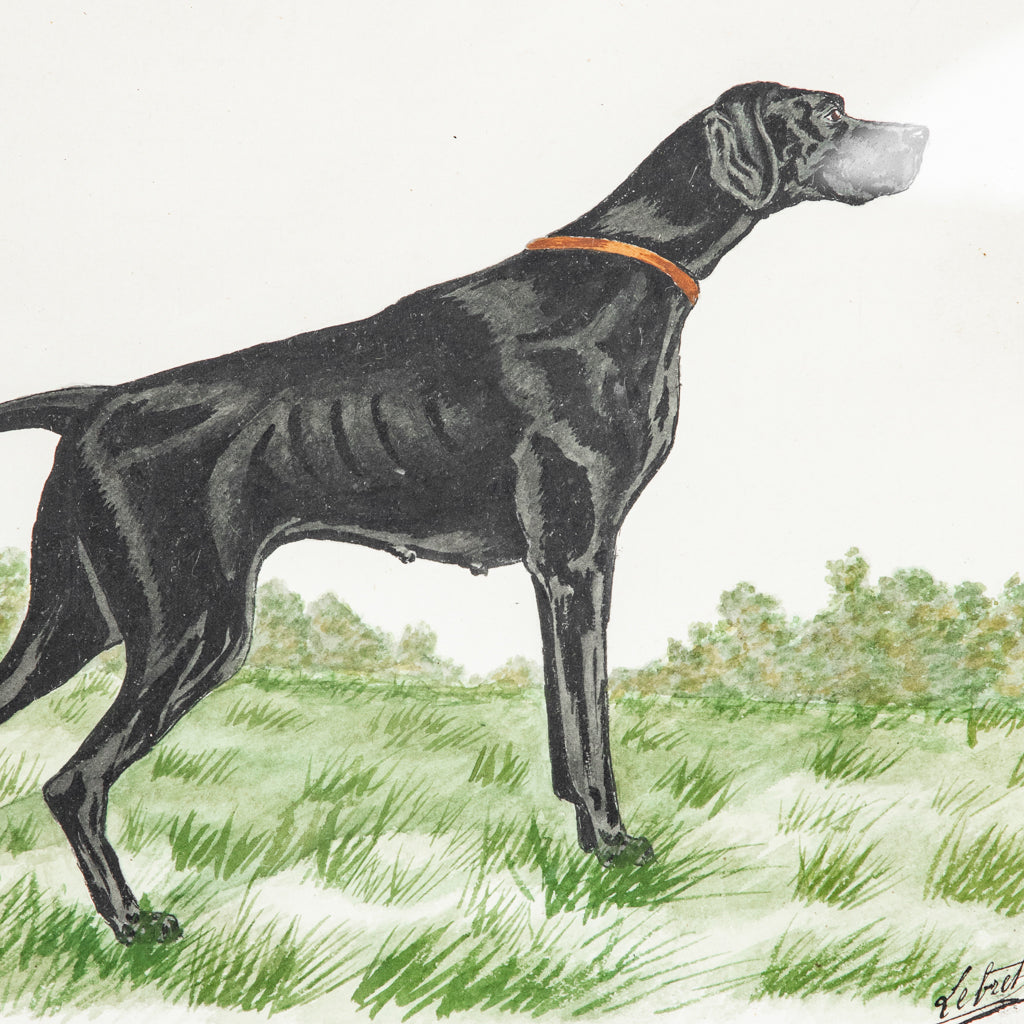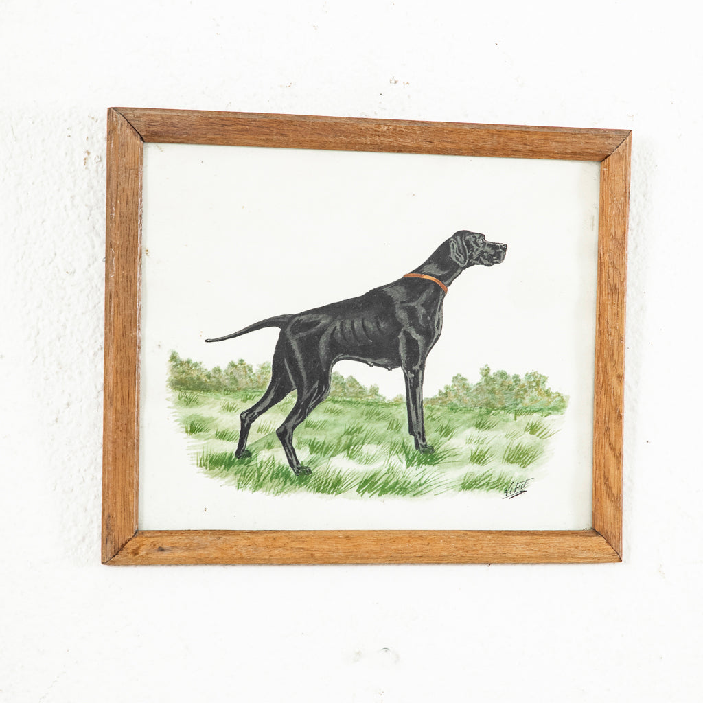 Framed watercolor of dog, c. 1900. Hunting dog. Signed by the artist. 10.25" H X 13.5" W
