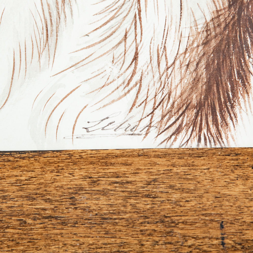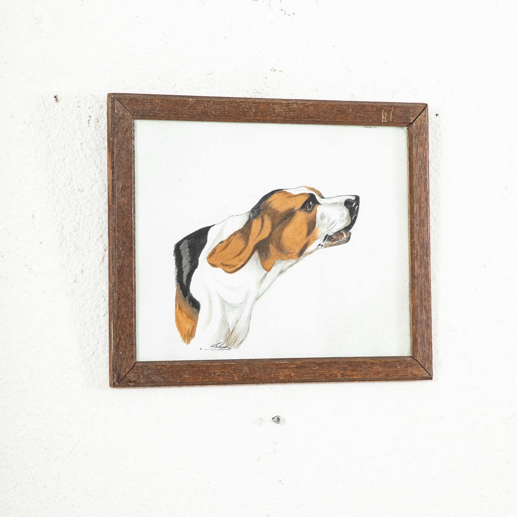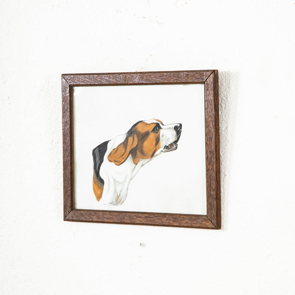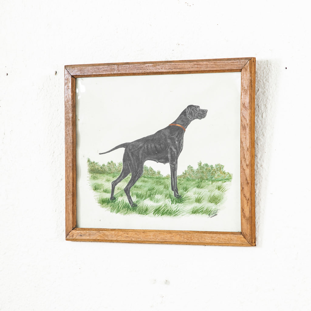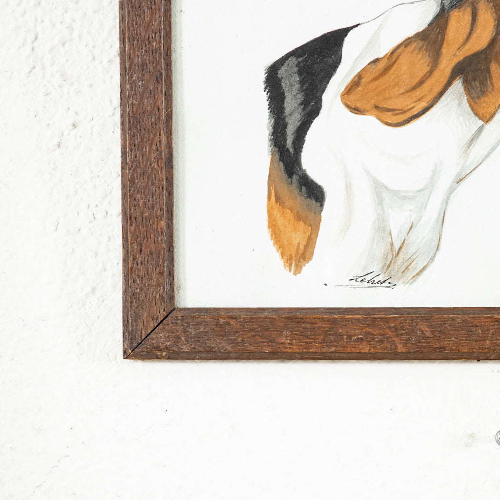 Framed watercolor of dog, c. 1900. Hunting dog. Signed by the artist. 10.25" H X 13.5" W