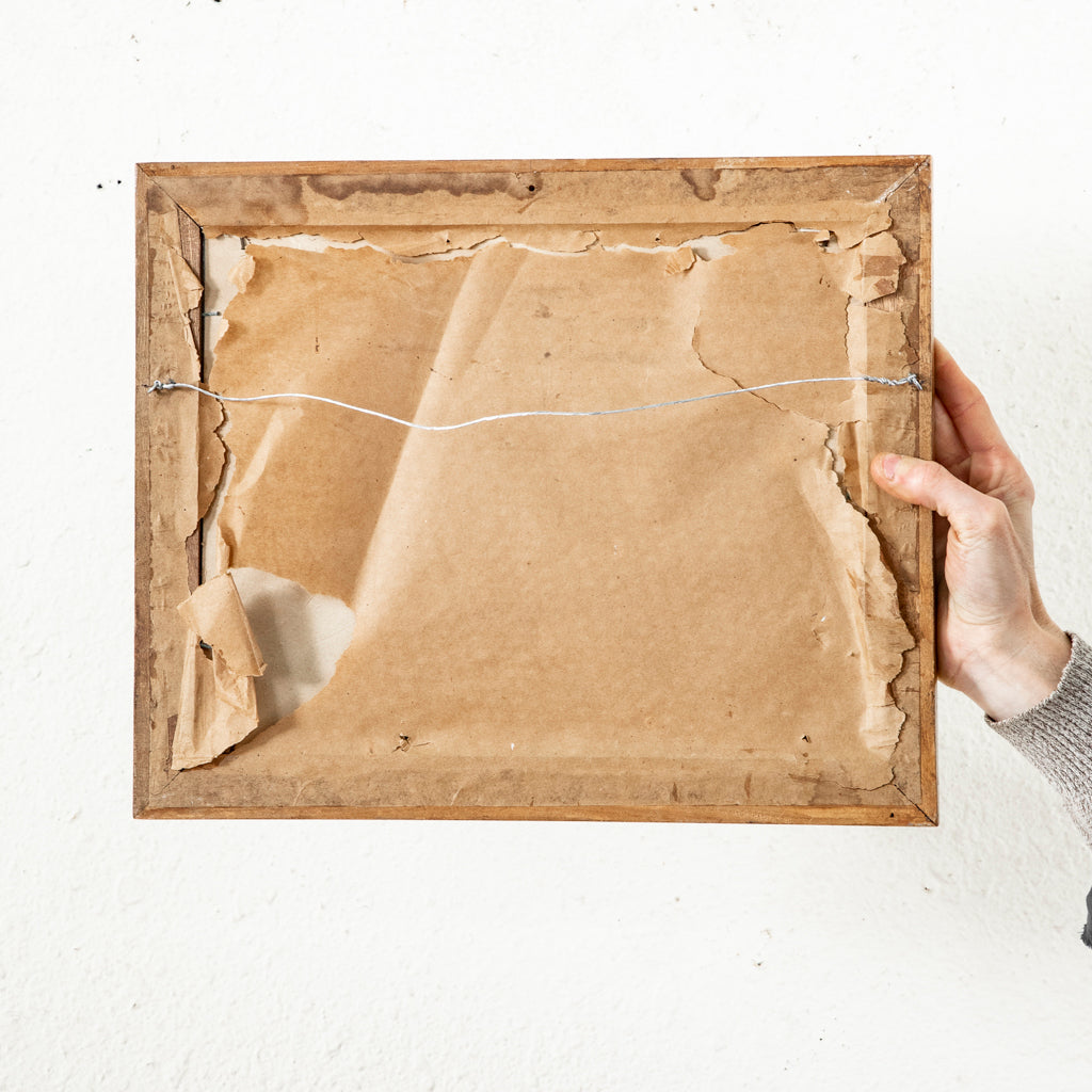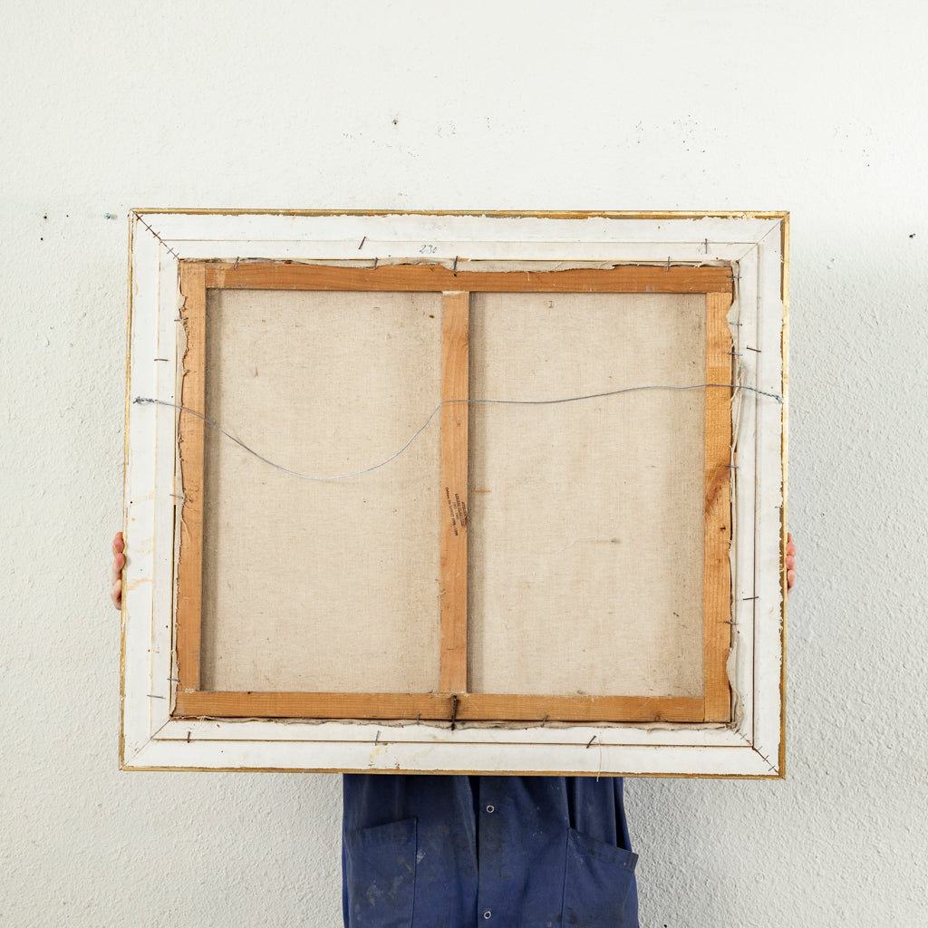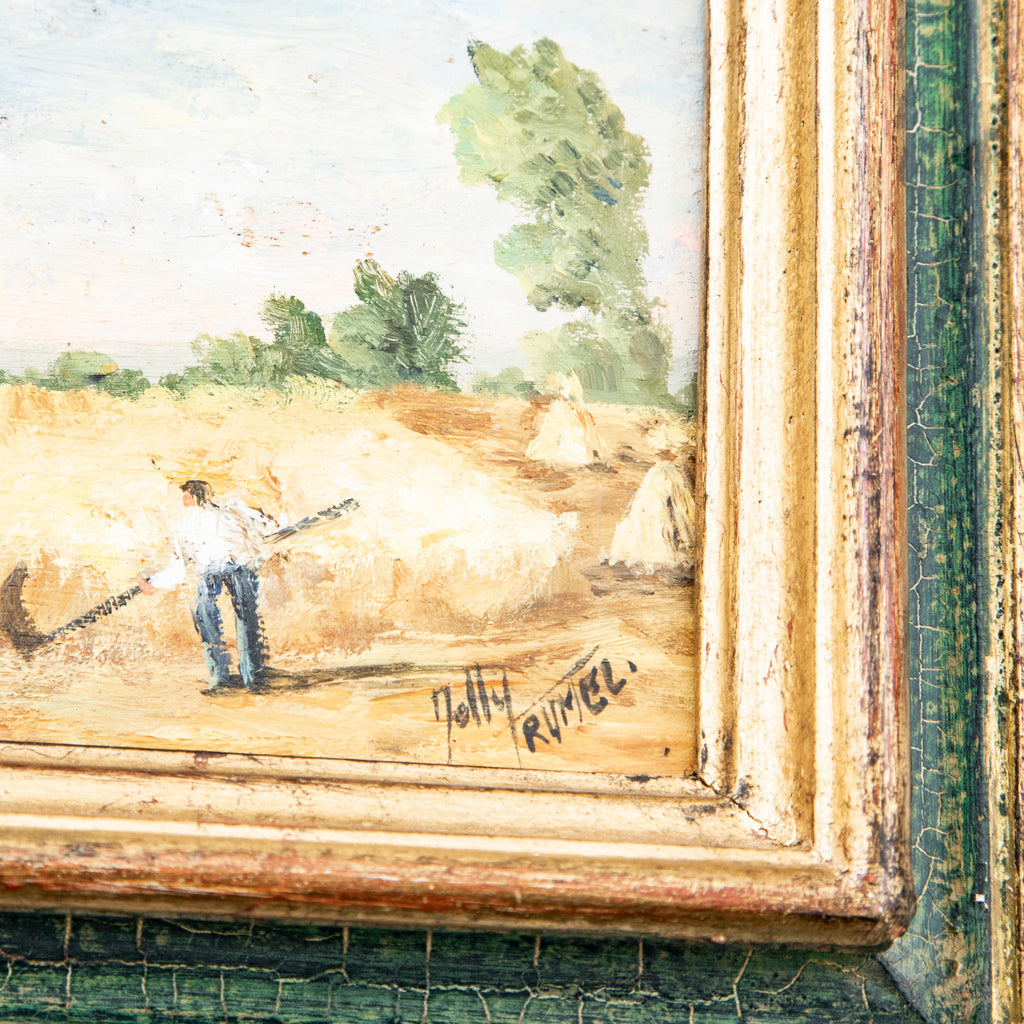 Oil on canvas in Montparnasse frame. Agricultural scene with wagon. Signed by the artist, Frederic Love. 23.5" H X 20.5" W framed 15.5" H X 12.5" unframed