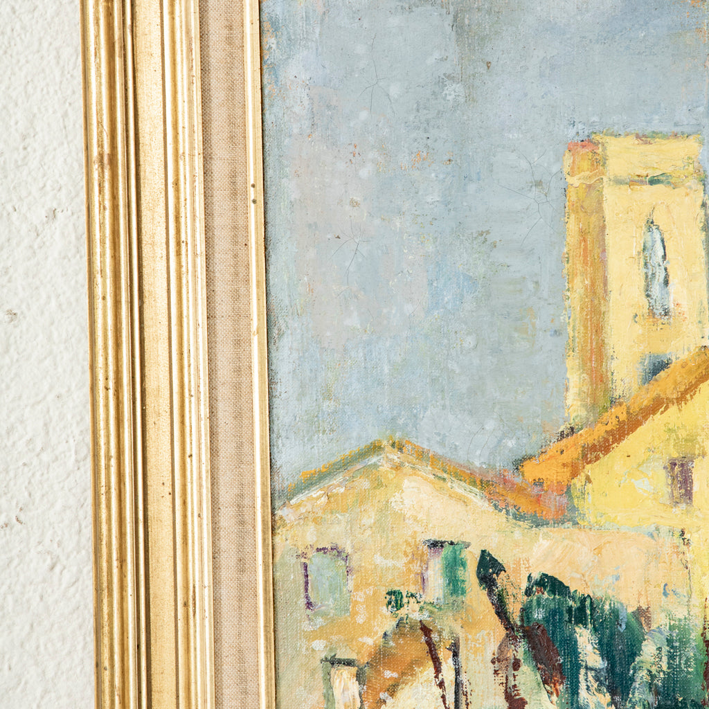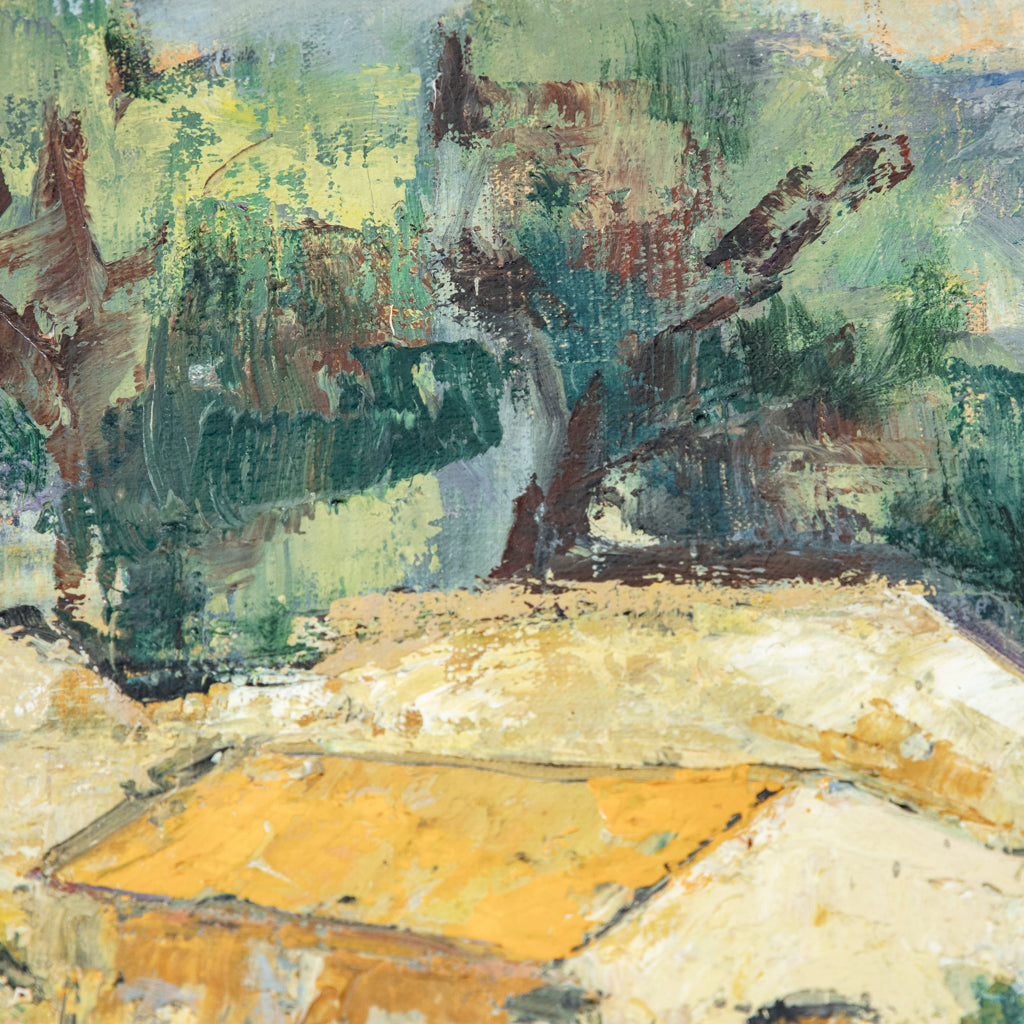 Large framed oil on canvas painting. Signed by the artist and dated 1951. Landscape in Southern France. 29" H X 34.25" W framed 23.25" H X 28.5" W unframed ...