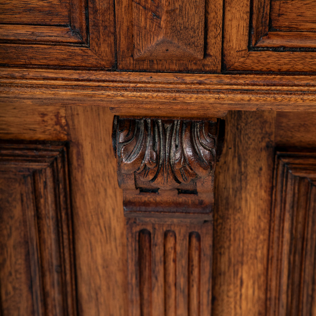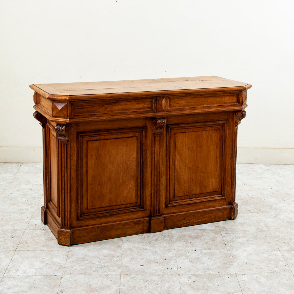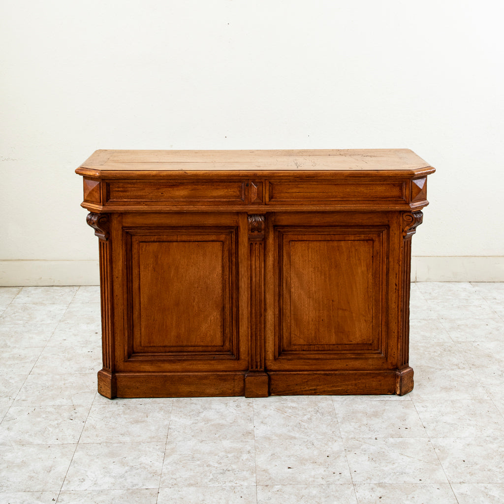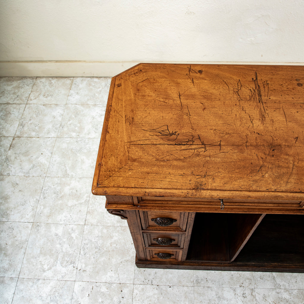 Late nineteenth century walnut shop counter or bar with five drawers and divided compartment, c. 1890. Two keys. Ideal as a kitchen island.