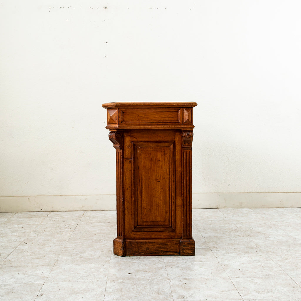 Small scale nineteenth century Restauration period walnut chest with four drawers and bronze drawer pulls, c. 1820. Ideal as a nightstand. 31.25" H X 27.25" W X 16.25" D ...