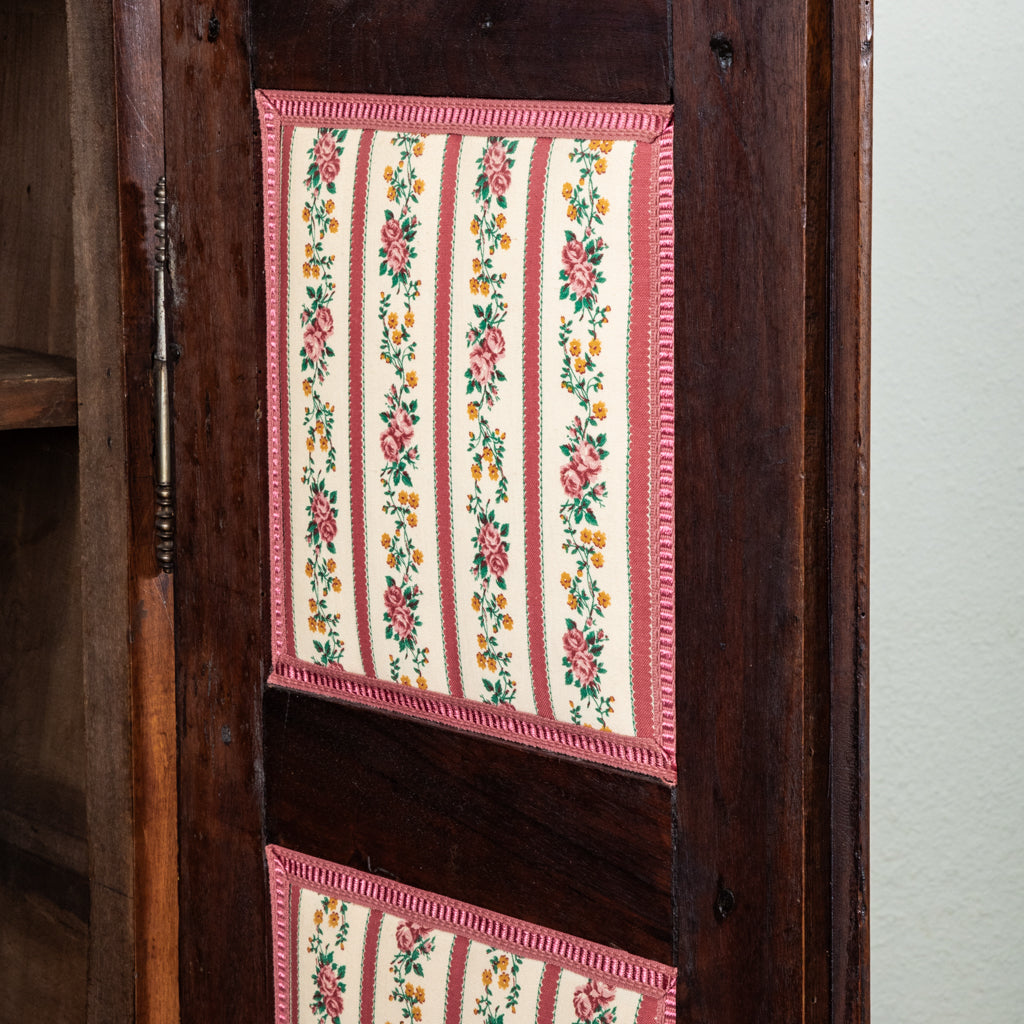 Early nineteenth century Louis XIV style walnut armoirette, c. 1820. Three interior shelves. One key. 66" H X 42" W X 17" D 39" W cabinet