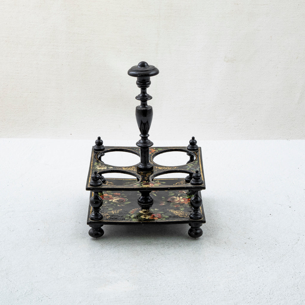 Hand painted tole Napoleon III period divided tray with four compartments and handle, c. 1860. 8.5" H X 5.5" Square