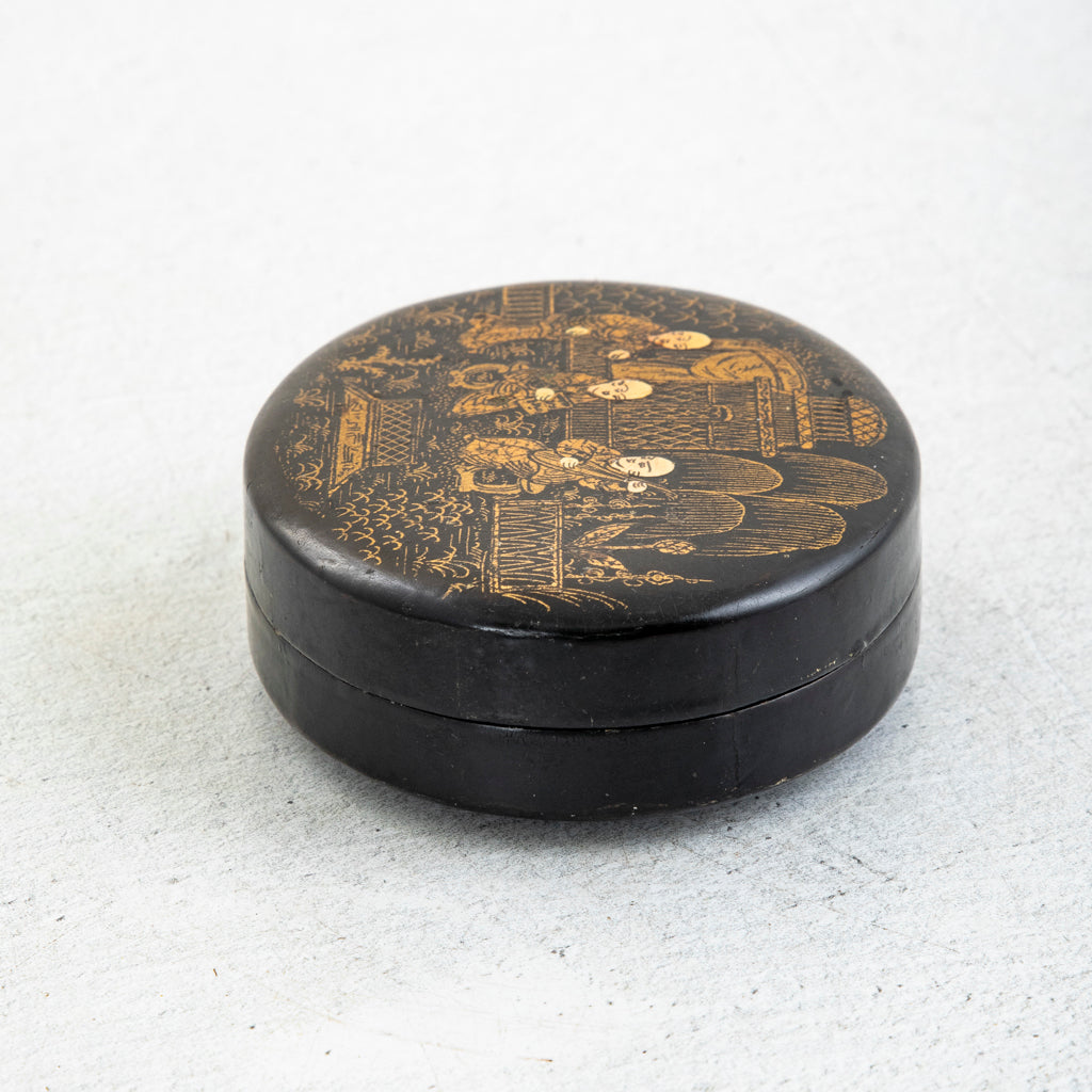 Napoleon III period papier mache chinoiserie box, c. 1860. 4" L X 3" W X 1.75" H