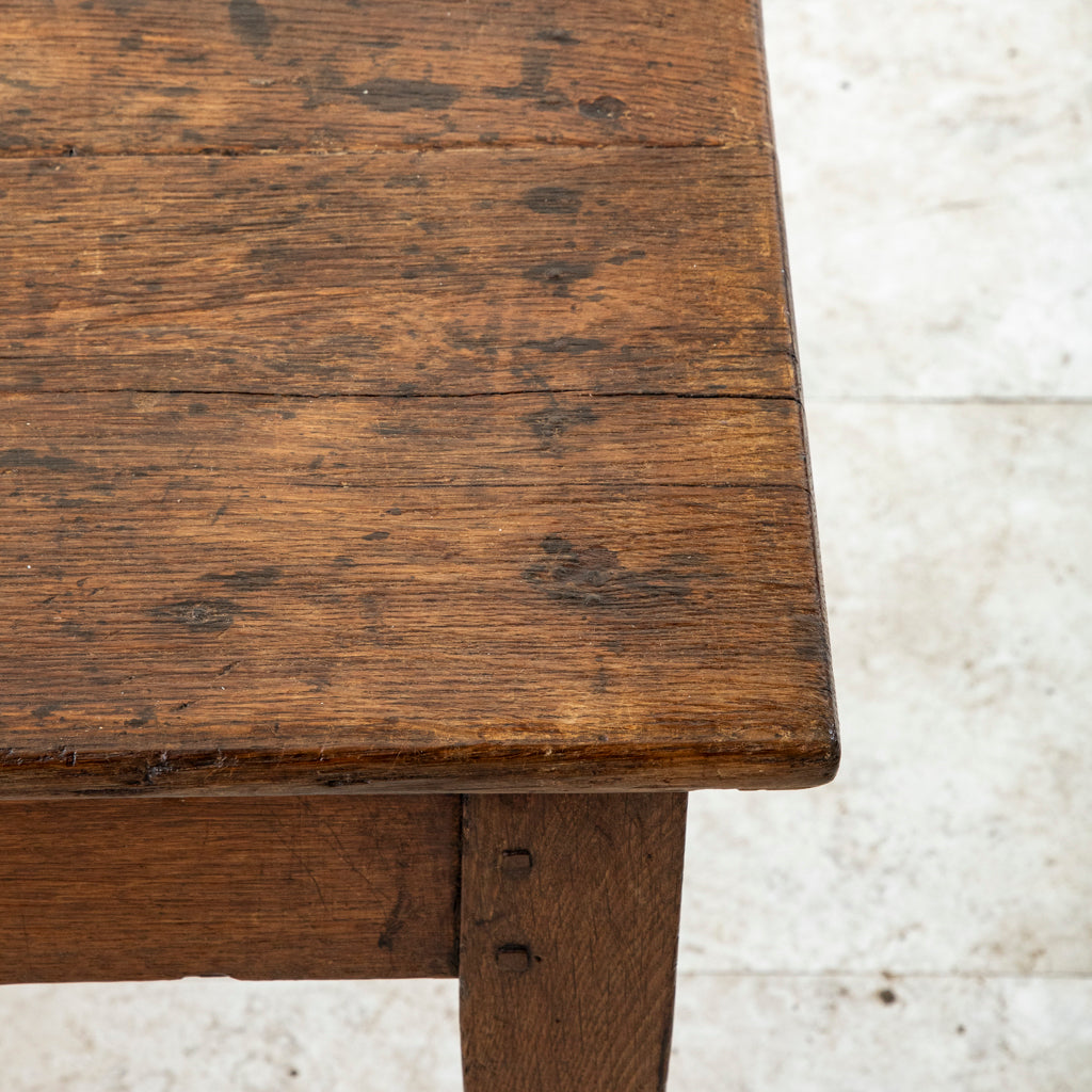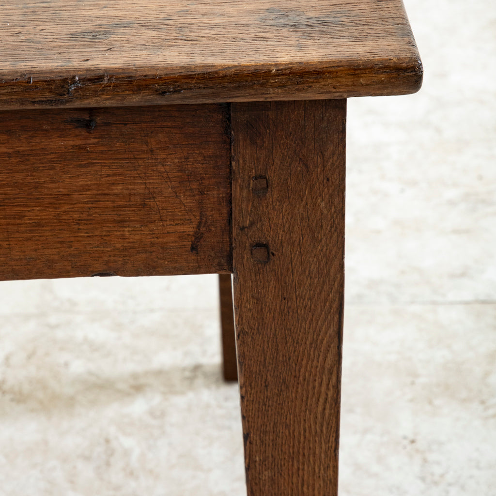 Rustic hand pegged oak side table from Normandy, c. 1900. 22" L X 18" W X 19.5" H
