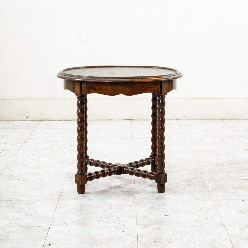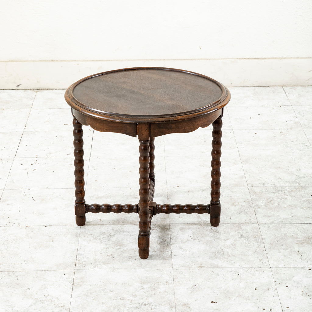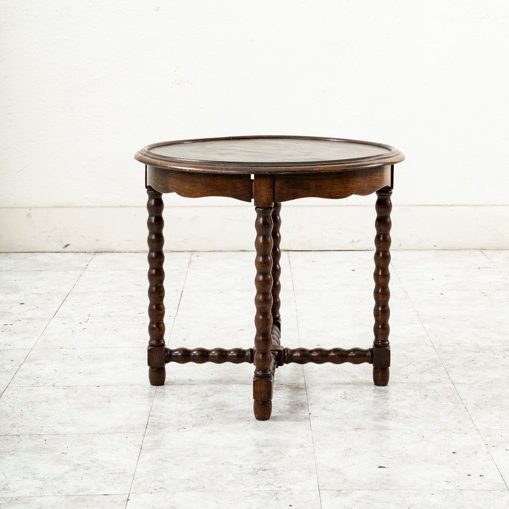 Round oak side table with turned legs and lower shelf, c. 1920. 20" H X 23.5" Diameter