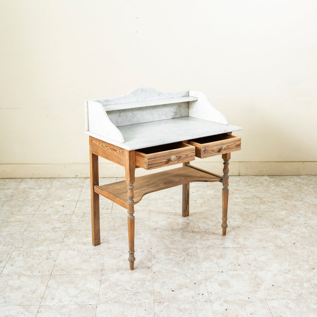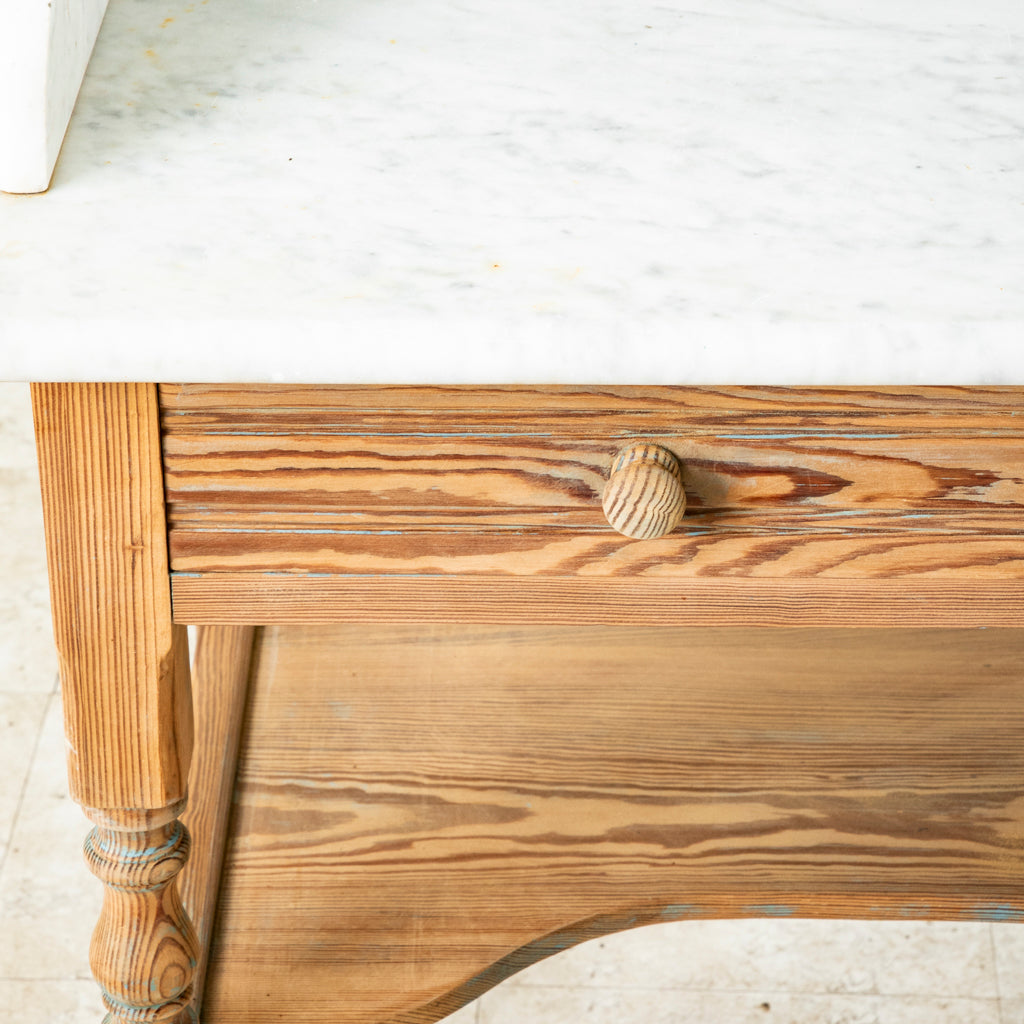 Painted vanity table with marble top, c. 1900. 41" H X 35.75" W X 20.5" H 31.5" to table top
