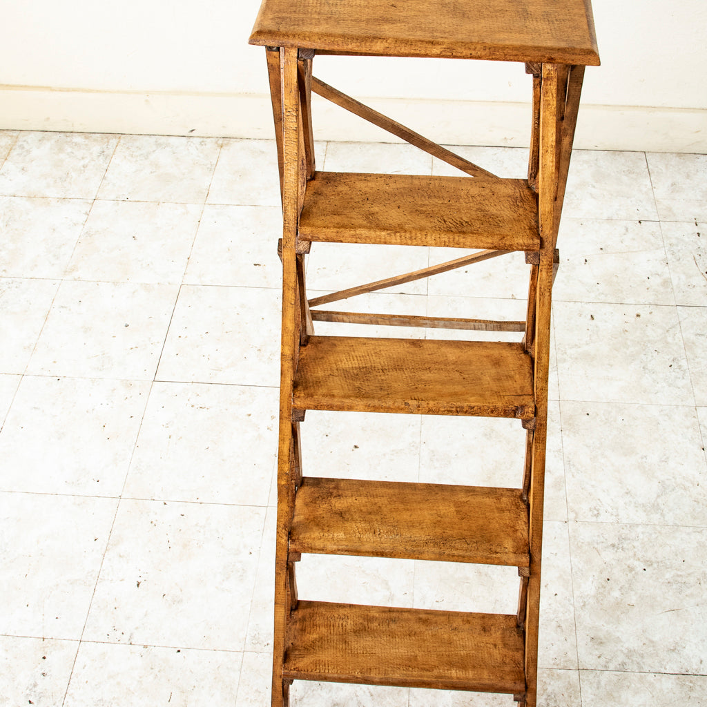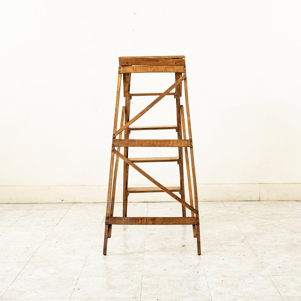 Early twentieth century beechwood folding library ladder, c. 1920. 45" H X 18" W X 32" D