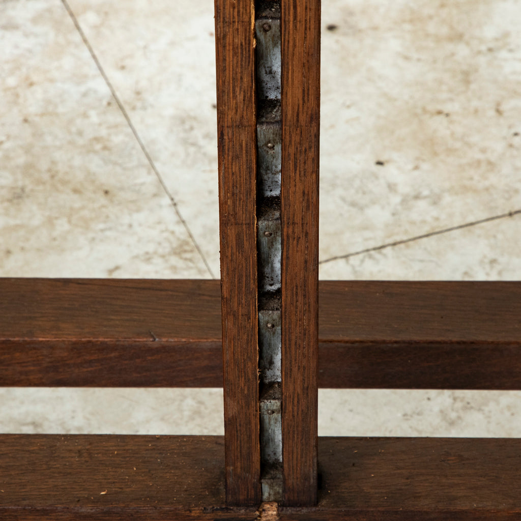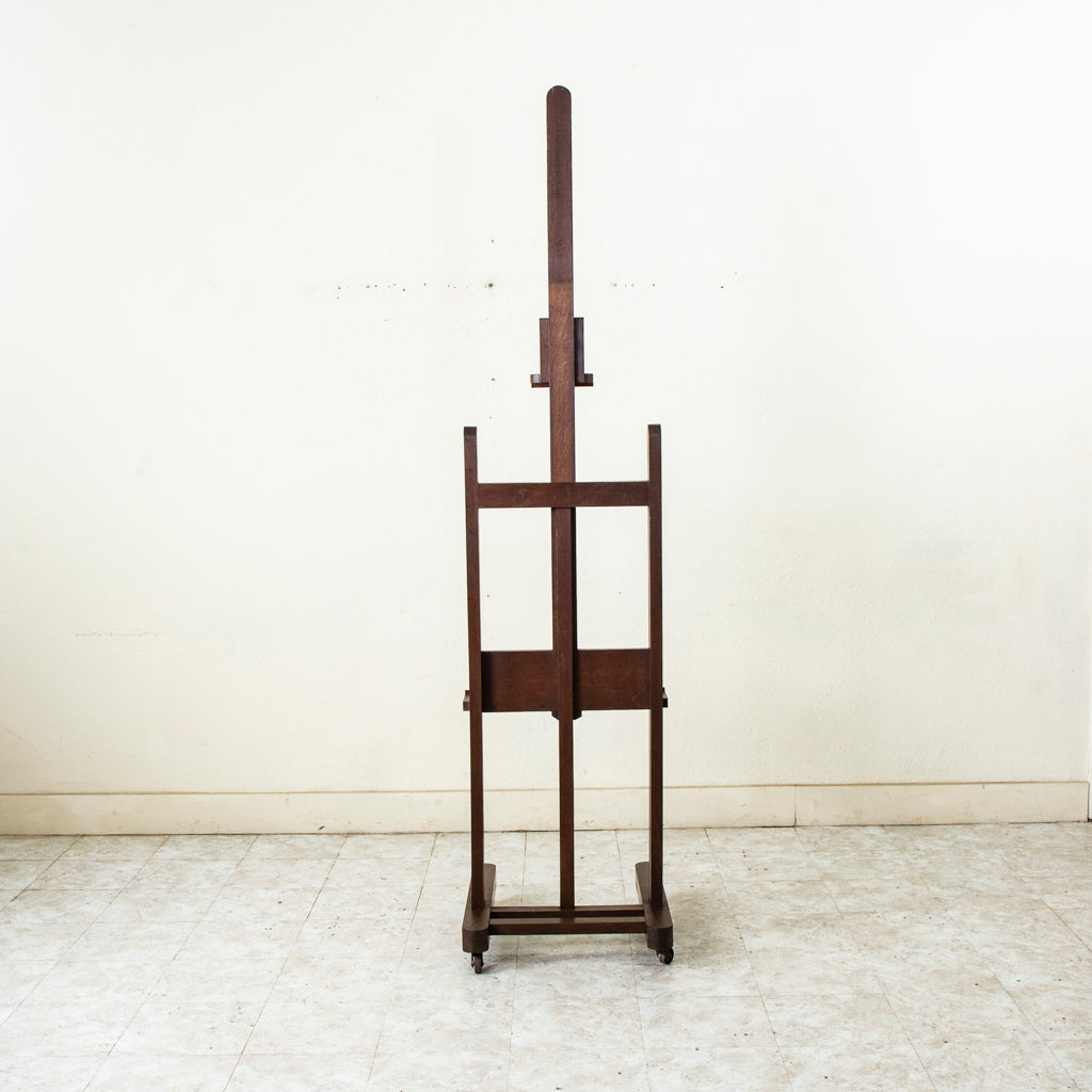 Late nineteenth century oak floor easel with adjustable height, c. 1900. 21.5" W X 23" D 70" to 103" adjustable height