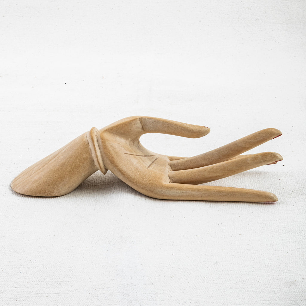 Wooden lady's hand for rings, c. 1950. Found in Paris. Two available. Sold separately. 8" L X 2" W X 2" H