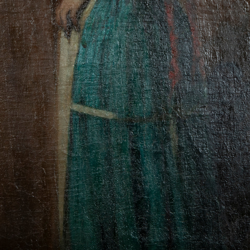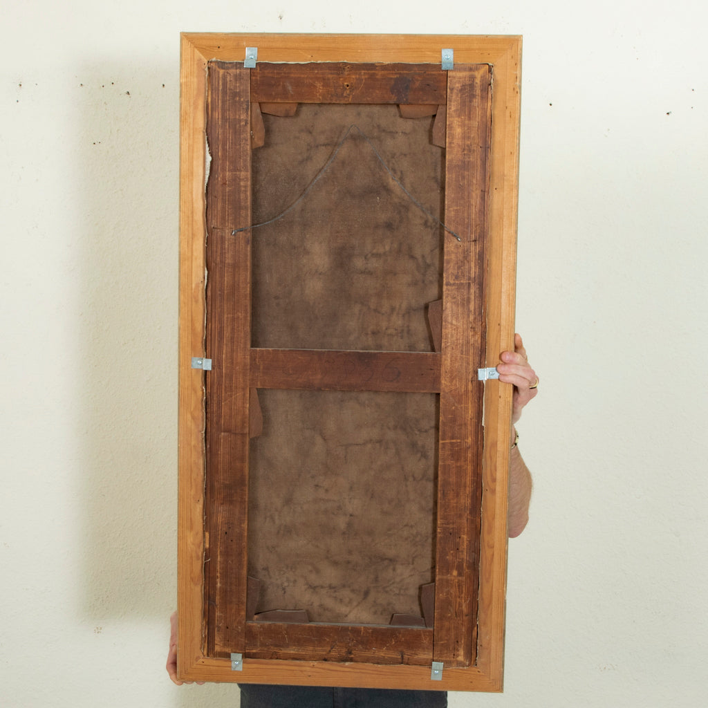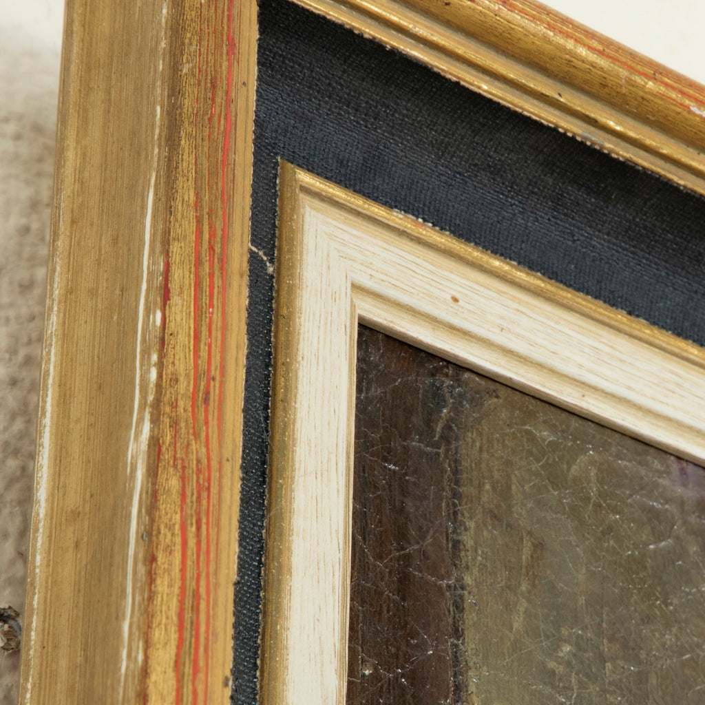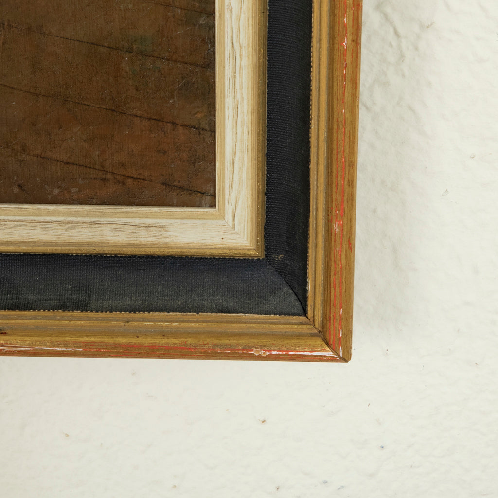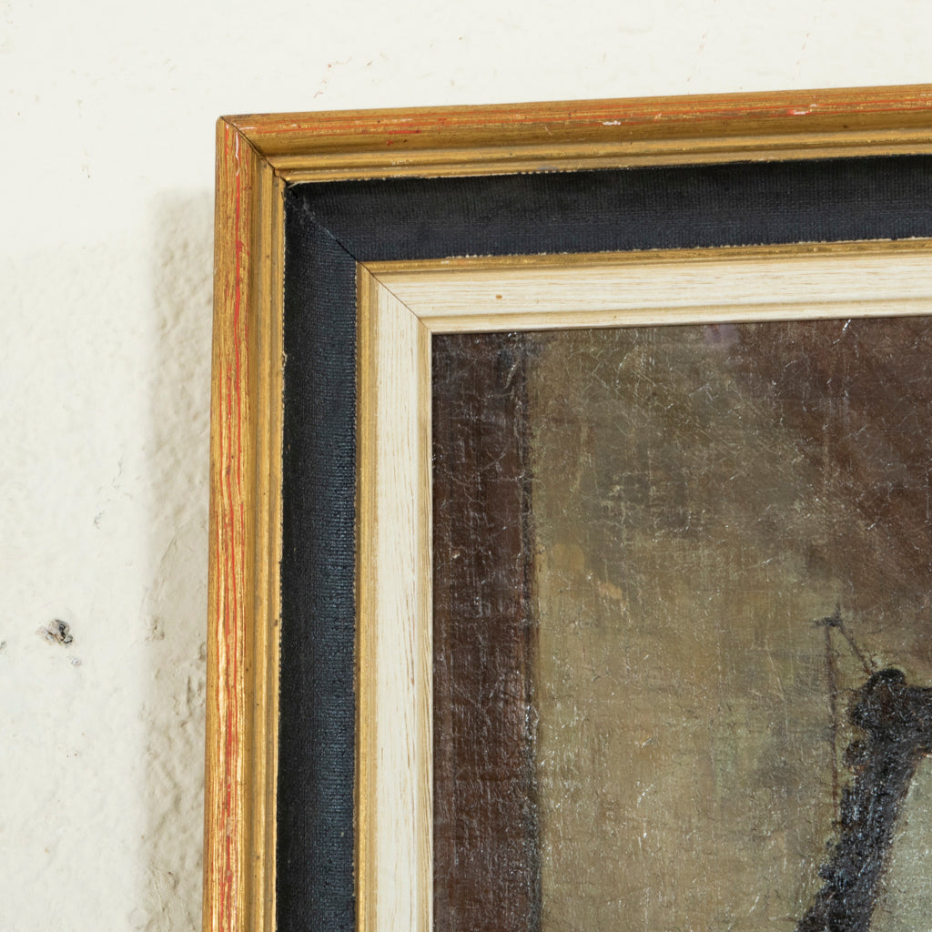 Painting, Nineteenth century oil on canvas, unframed. Signed James Bertrand 1870. Genre painting of a little girl standing on her tiptoes to look in the mirror. Evokes her hope to...